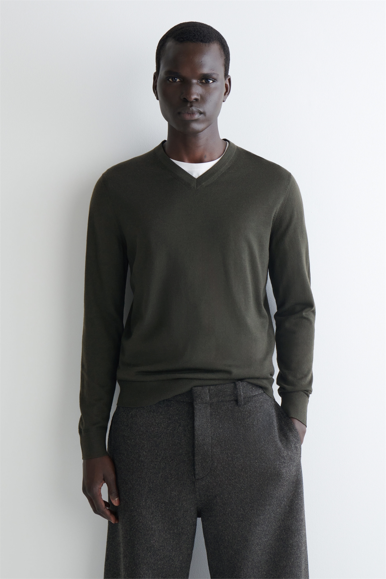 Тонкий джемпер с V-образным вырезом из мериносовой шерсти