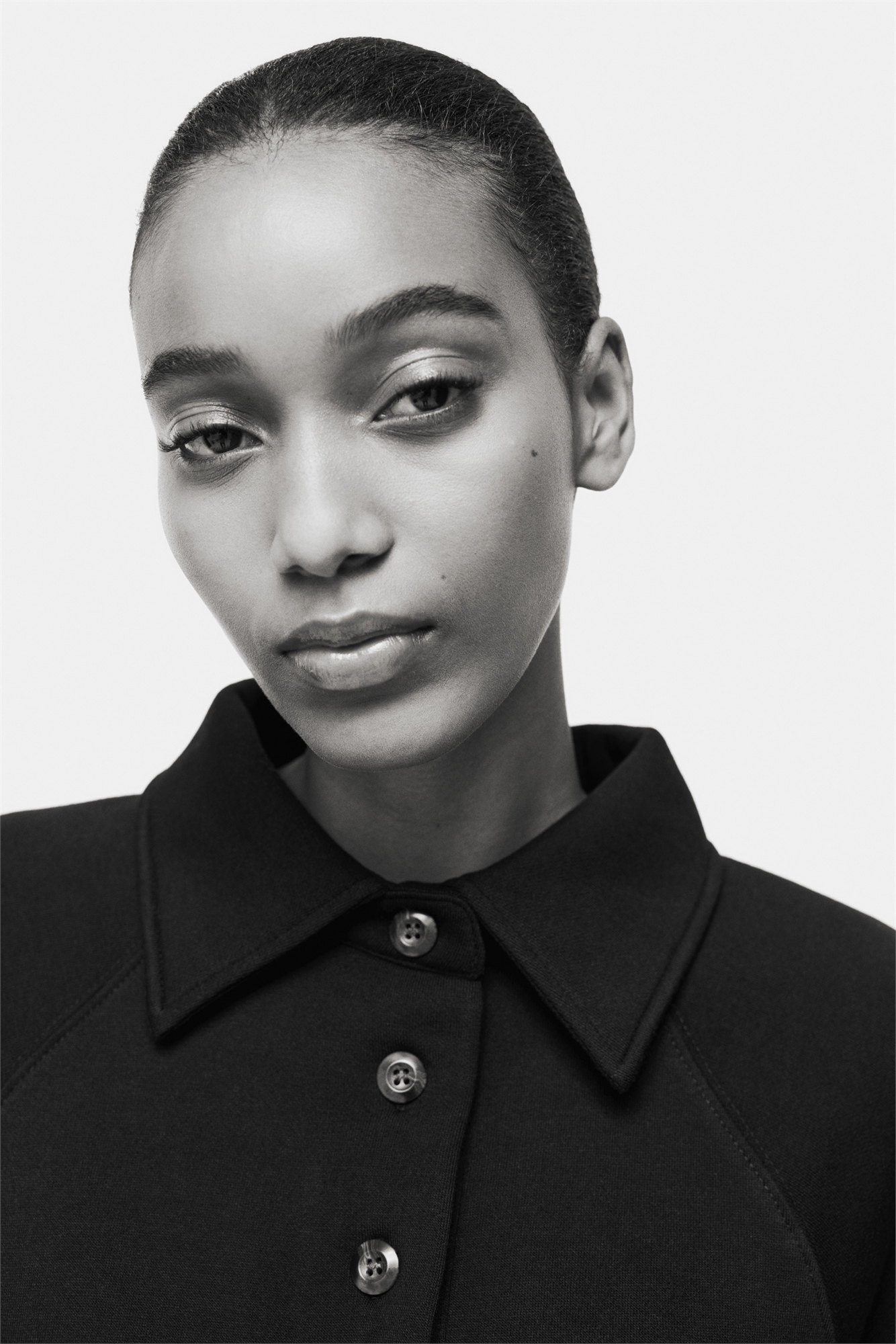 Топ из толстовочной ткани с мягким начесом внутри. Воротник, застежка на пуговицах и длинные рукава реглан. Ребристые манжеты и подол.
