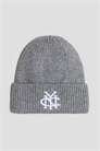 Бини из мягкого трикотажа в рубчик с вышивкой спереди и подворотом на подоле.