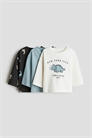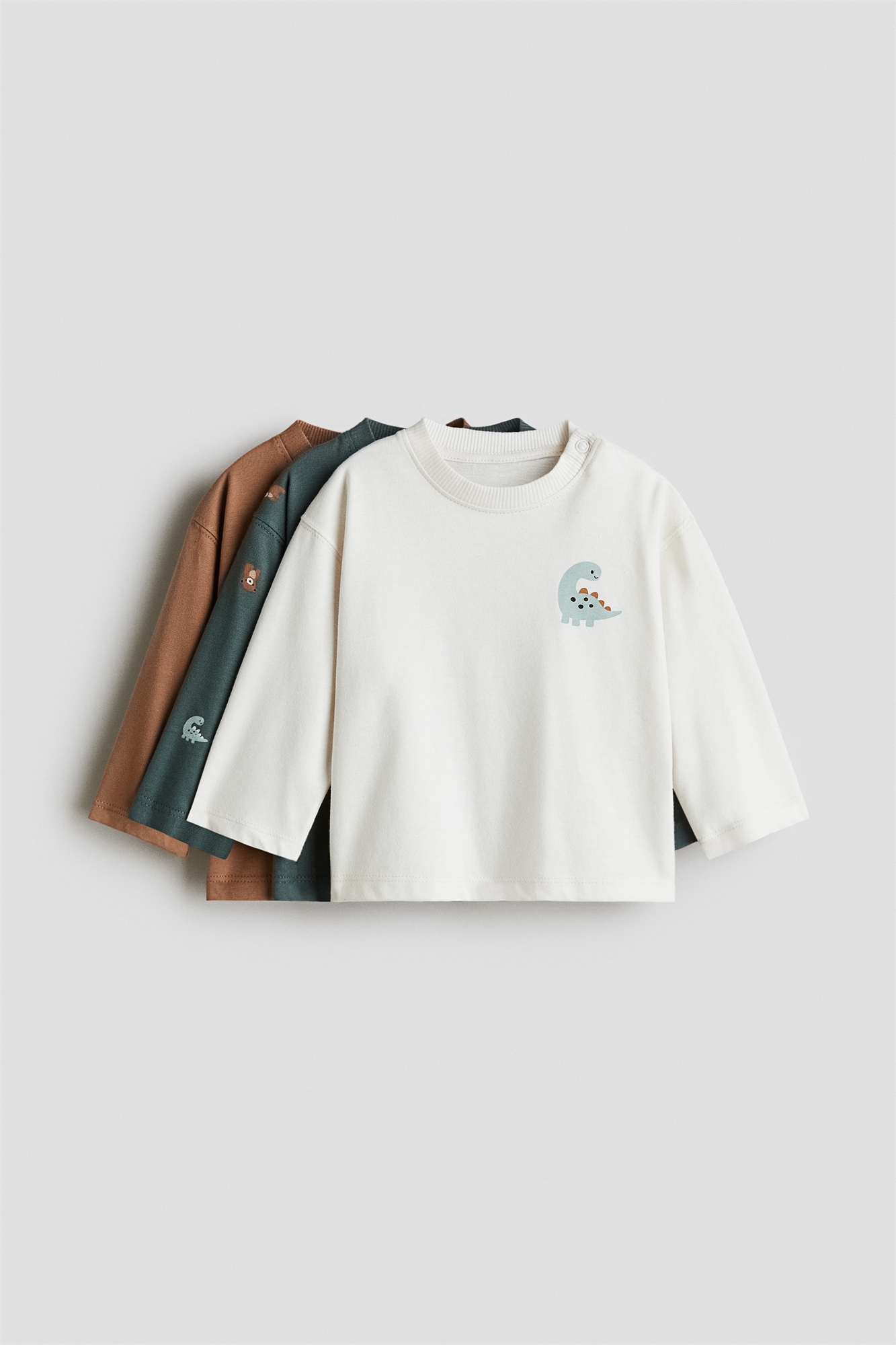 Футболки с длинными рукавами из мягкого хлопкового джерси. Круглый вырез с ребристой отделкой, застежки с одной стороны (кроме размеров 2-4Y) и спущенные плечи.