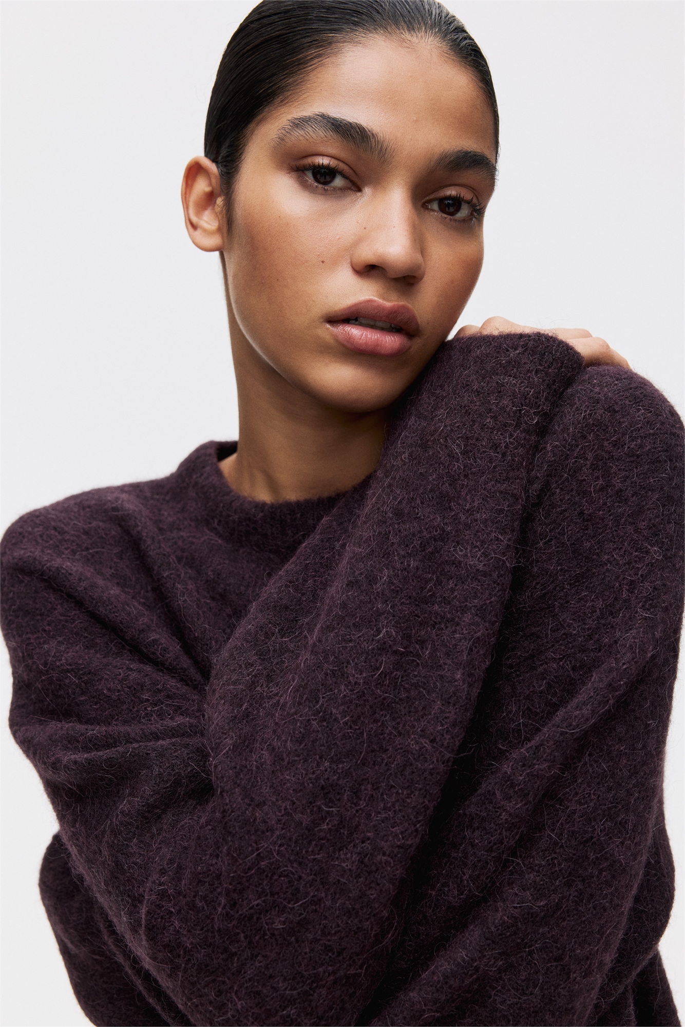 Джемпер оверсайз из мягкого трикотажа с содержанием альпаки и шерсти. Ребристая горловина, спущенные плечи и длинные рукава. Ребристые манжеты и подол.