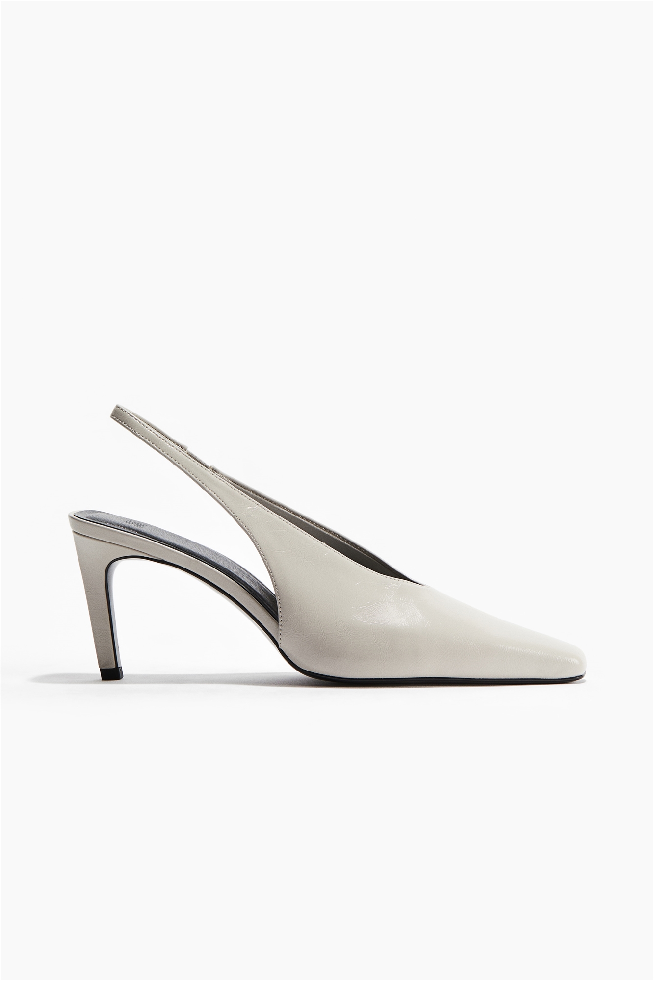 Босоножки на каблуке из лакированной ткани с оттопыренным носком и узким ремешком на каблуке с эластичной вставкой с одной стороны. Атласная подкладка.
