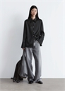 Эта рубашка из эластичного вискозного атласа переосмысливает классический пижамный силуэт, дополняя его изысканными деталями: остроконечным воротником, широкими манжетами на пуговицах с двухслойной конструкцией и рукавами с застежкой на пуговицу. По подолу имеются тонкие разрезы. Обычный крой