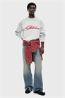 Топ из плотной толстовочной ткани из хлопка. Круглый вырез в рубчик, спущенные плечи, длинные рукава, широкая тесьма на манжетах и подоле. Свободный крой для пышного, но не чрезмерно большого силуэта.