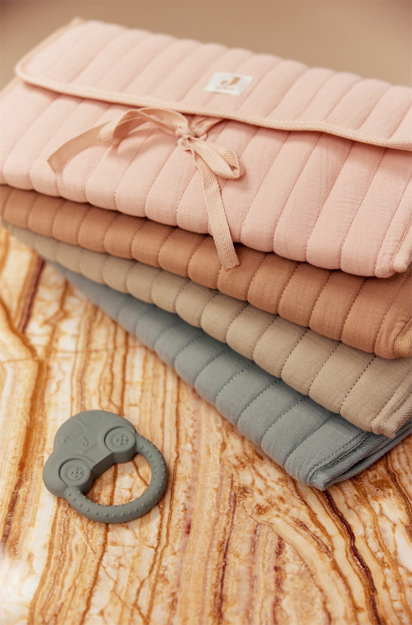Добавьте стильный штрих к своим детским вещам с помощью этого муслинового комплекта To Go. На подушечке есть практичные карманы для подгузников, чтобы при переодевании все было под рукой. Вкладыш можно застегнуть с помощью ленточки. Внешняя сторона выполнена из мягкой марлевой ткани, а съемная внутренняя часть украшена милым принтом Harvest. Чехол из марлевой ткани с принтом Harvest на внутренней стороне идеально подходит для стильного хранения влажных салфеток. Наши желтые обложки для буклетов - идеальный аксессуар. В этой стильной обложке надежно хранится экзаменационный буклет ребенка. Практичная застежка-шпилька позволяет аккуратно хранить все на своих местах. Размеры: Основа: 71x70x0,5 см, обложка: 23x17x1 см и чехол: 21x12,5x5 см.