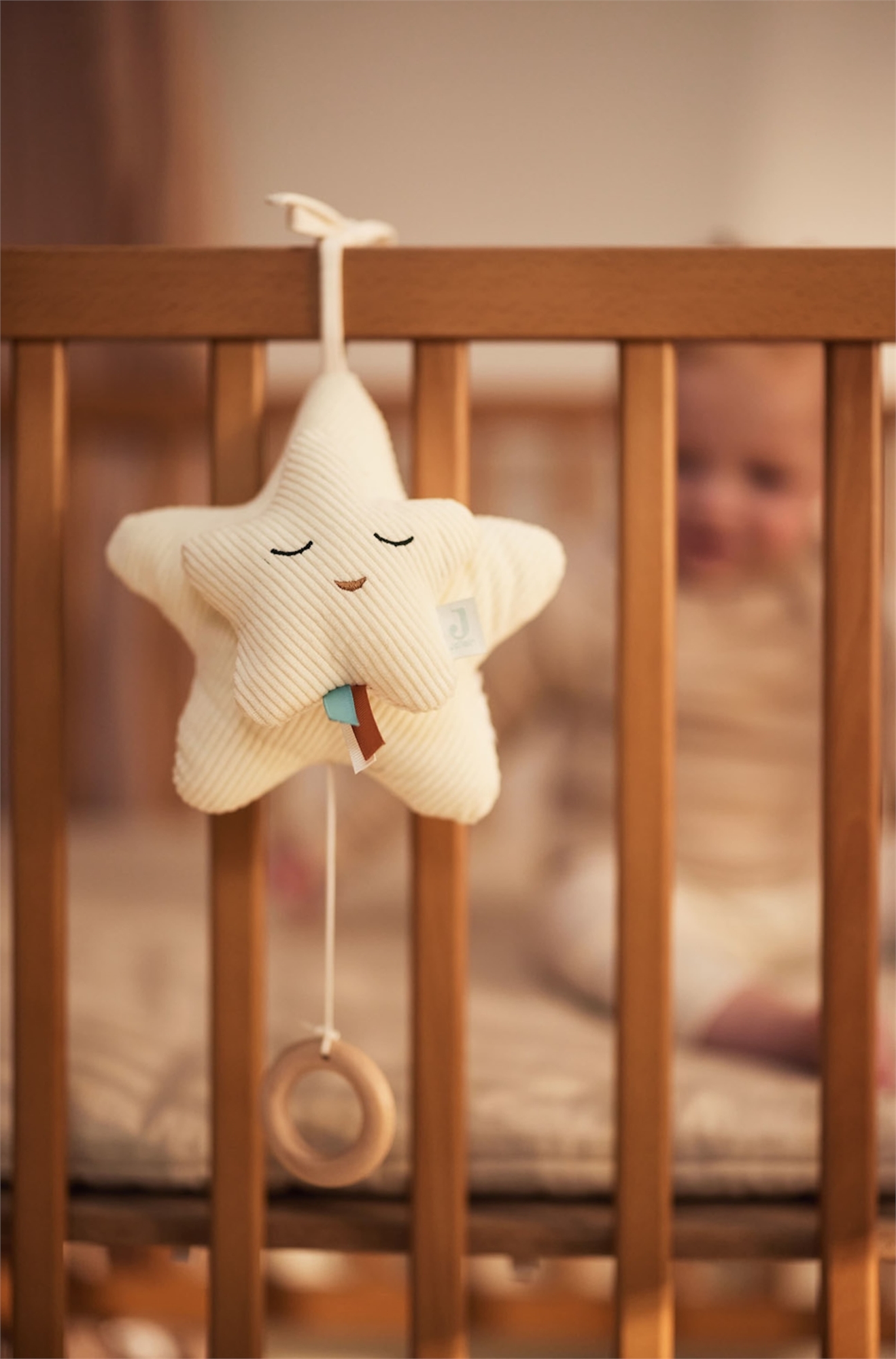 В этом звездном наборе вы найдете 2 прекрасных предмета, которые помогут расслабиться и развлечь вашего малыша. Ткань для объятий в форме звезды сделана из удивительно мягкой бархатной ткани, а спинка - из ребристой ткани. Лицо красиво вышито, и вы можете легко прикрепить эту милую звездочку к пустышке с помощью удобного шнурка. Таким образом, ваш малыш не будет так быстро терять свою пустышку, и в то же время у него будет мягкая игрушка, которую можно погладить! И воспроизведите для своего ребенка прекрасные звуки колыбельной Шуберта. Музыкальная шкатулка в форме большой и маленькой звезды имеет разноцветные шнуры, вышитые глазки и шнурок для воспроизведения музыки. Размеры: ткань для объятий: 25x25x0,1 см и музыкальная шкатулка: 60x20x9,5 см.