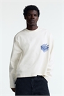 Топ в стиле бокс из плотного хлопкового джерси с принтом и изношенными деталями. Ребристая горловина, слегка спущенные плечи, длинные рукава и прямой подол. Посадка оверсайз для придания мешковатого, свободного силуэта.