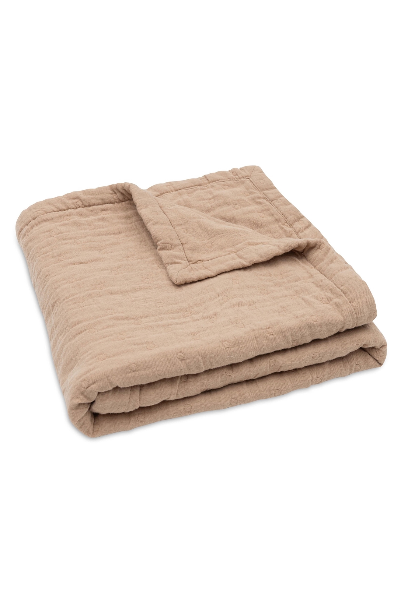 Наше детское одеяло из муслина, сертифицированного GOTS, - настоящий must-have для вашего малыша! Благодаря милым жаккардовым точкам это одеяло привнесет в комнату вашего малыша атмосферу тепла и мягкости. Дышащая муслиновая ткань прекрасно согреет вашего малыша, независимо от того, лежит ли он в кроватке или просто обнимается с вами. Одеяло можно сочетать с одной из наших простыней. Это не только прекрасно выглядит, но и позволяет не менять одеяло каждый раз. Одеяло для детской кроватки имеет размер 75x100 см. Показатель TOG одеяла составляет 0,5.