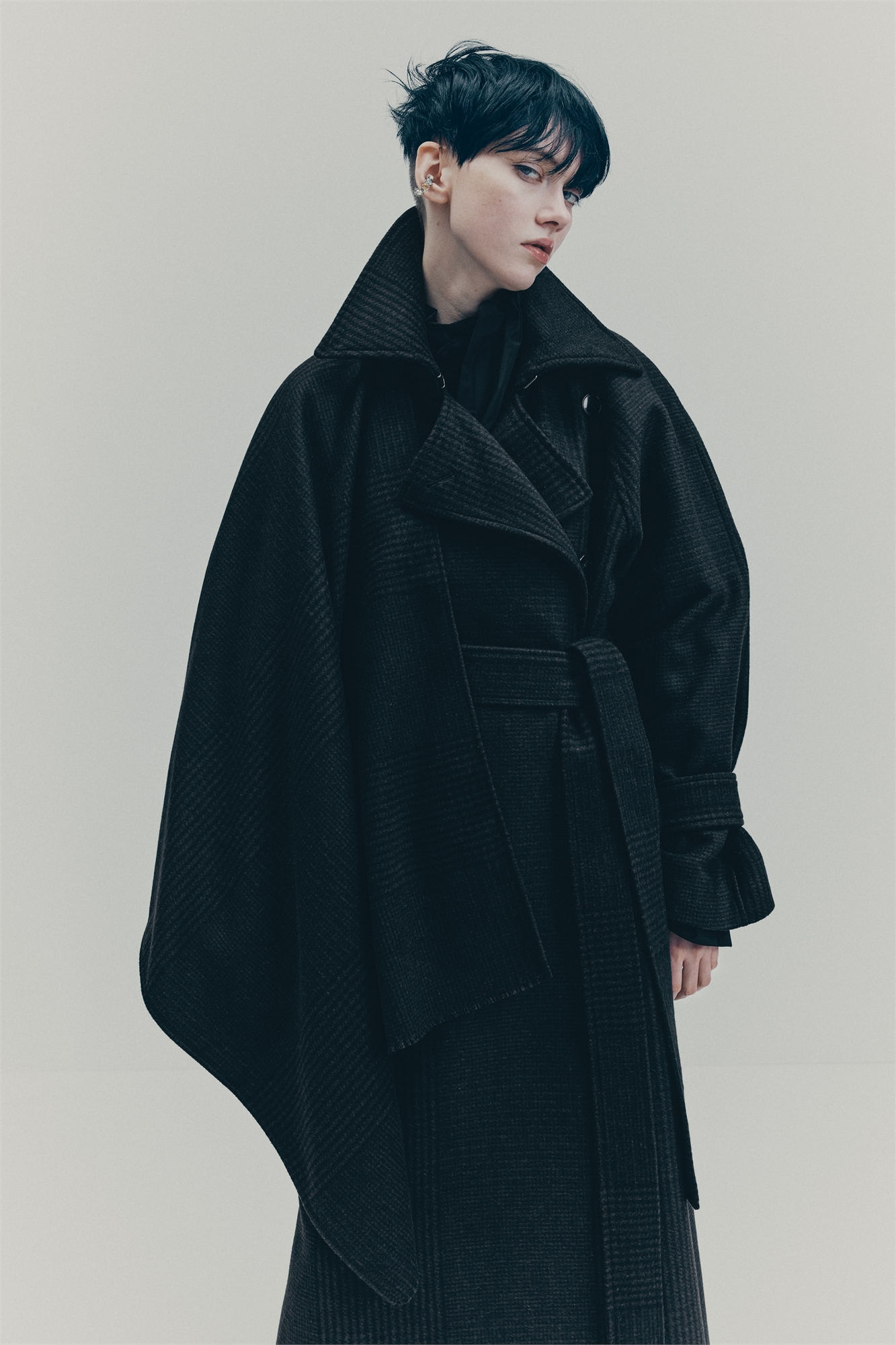 Большой тканый шарф из мягкой шерстяной смеси с обтрепанными короткими краями и неброской вязкой по длинным сторонам.