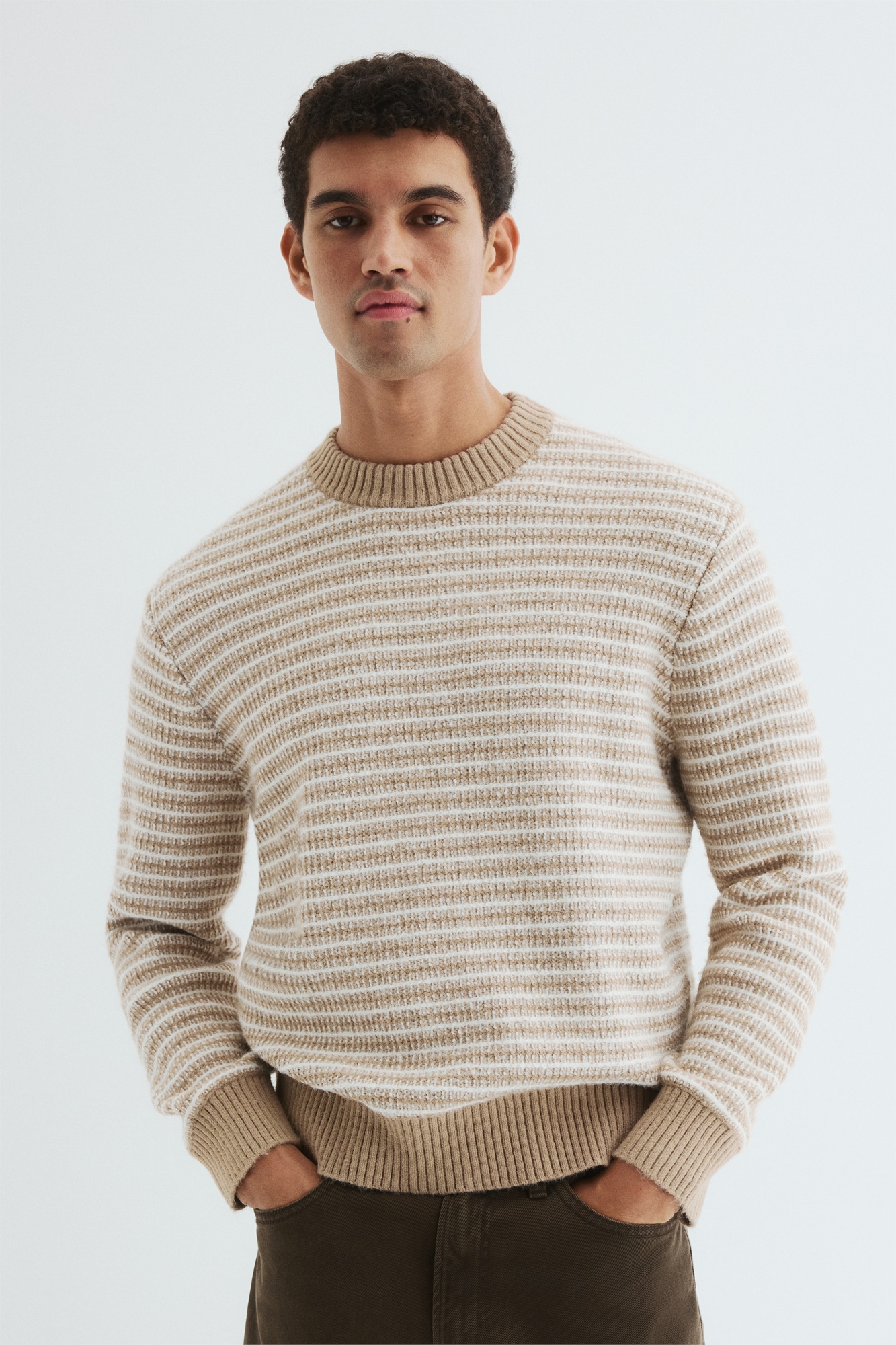 Джемпер из мягкого жаккардового трикотажа с круглым вырезом и длинными рукавами. Окантовка вокруг выреза, на манжетах и подоле. Регулярный крой для комфортной носки и классического силуэта.