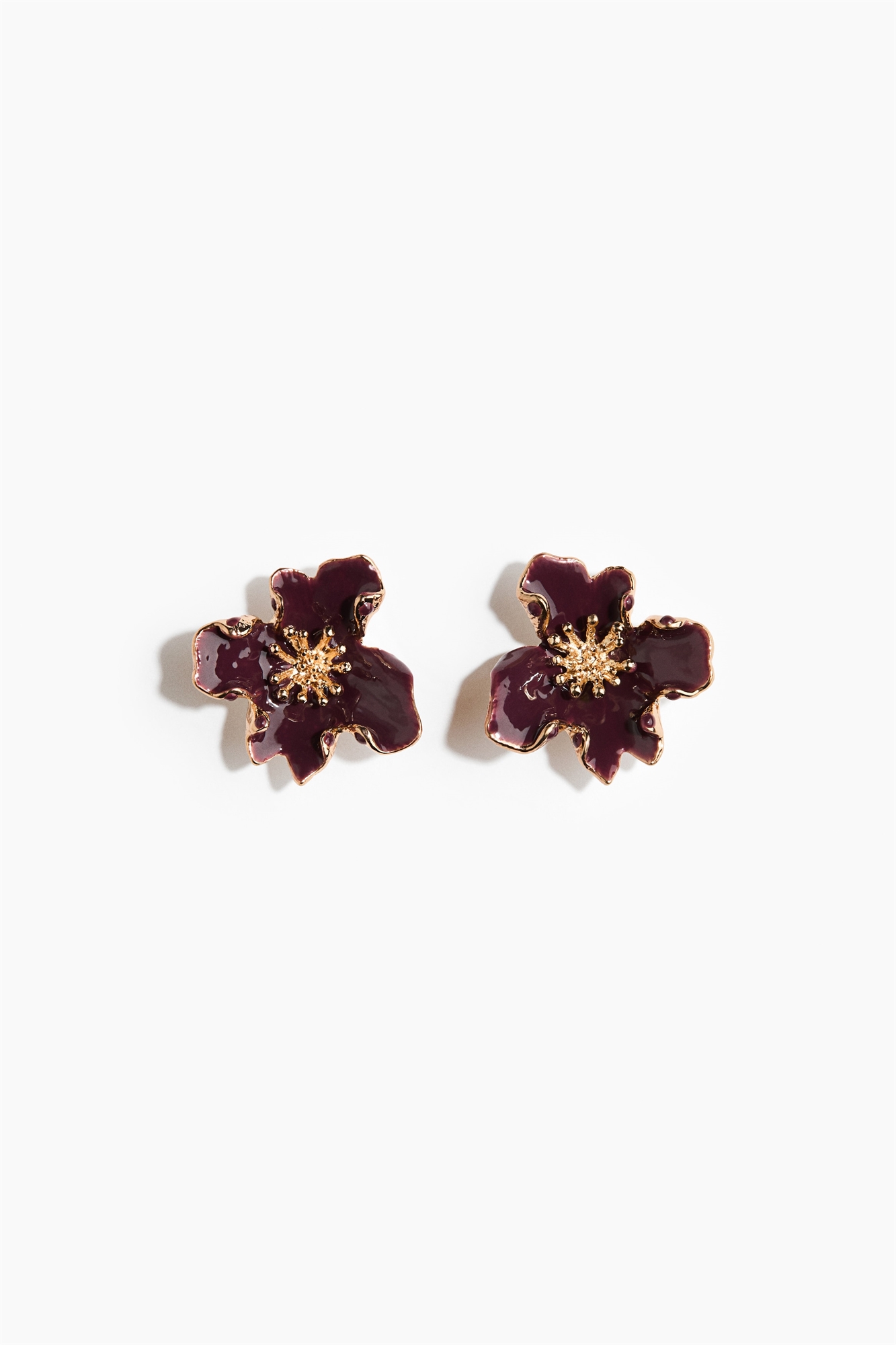 Металлические серьги в форме цветка с глянцевой эмалью.