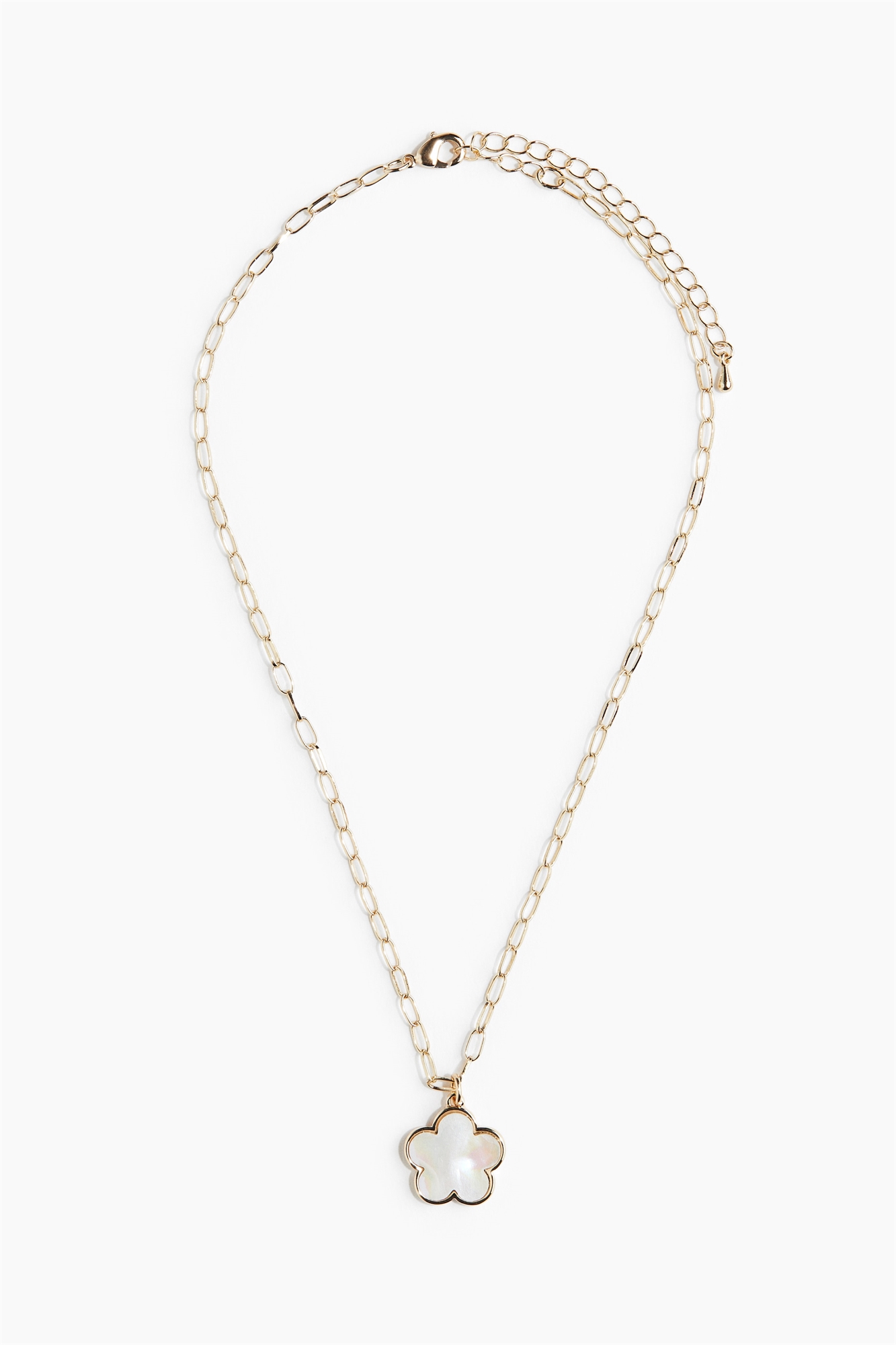 Ожерелье на цепочке из металлических скрепок с подвеской в форме цветка с мраморной пластиковой поверхностью. Регулируемая длина с застежкой-триггером.