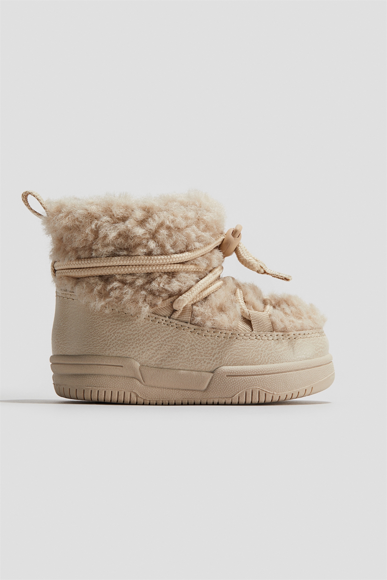 Сапоги из пушистой ткани со шнуровкой на шнурке с завязкой спереди. Петля сзади и застежка-молния с одной стороны. Пушистая подкладка и стелька из технической пены Cellfit™ для дополнительного комфорта.