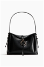 Сумка через плечо из мелованной ткани со скрытой магнитной застежкой в верхней части и коротким клапаном с декоративной металлической пряжкой спереди. Регулируемый плечевой ремень и внутреннее отделение на молнии. На подкладке.