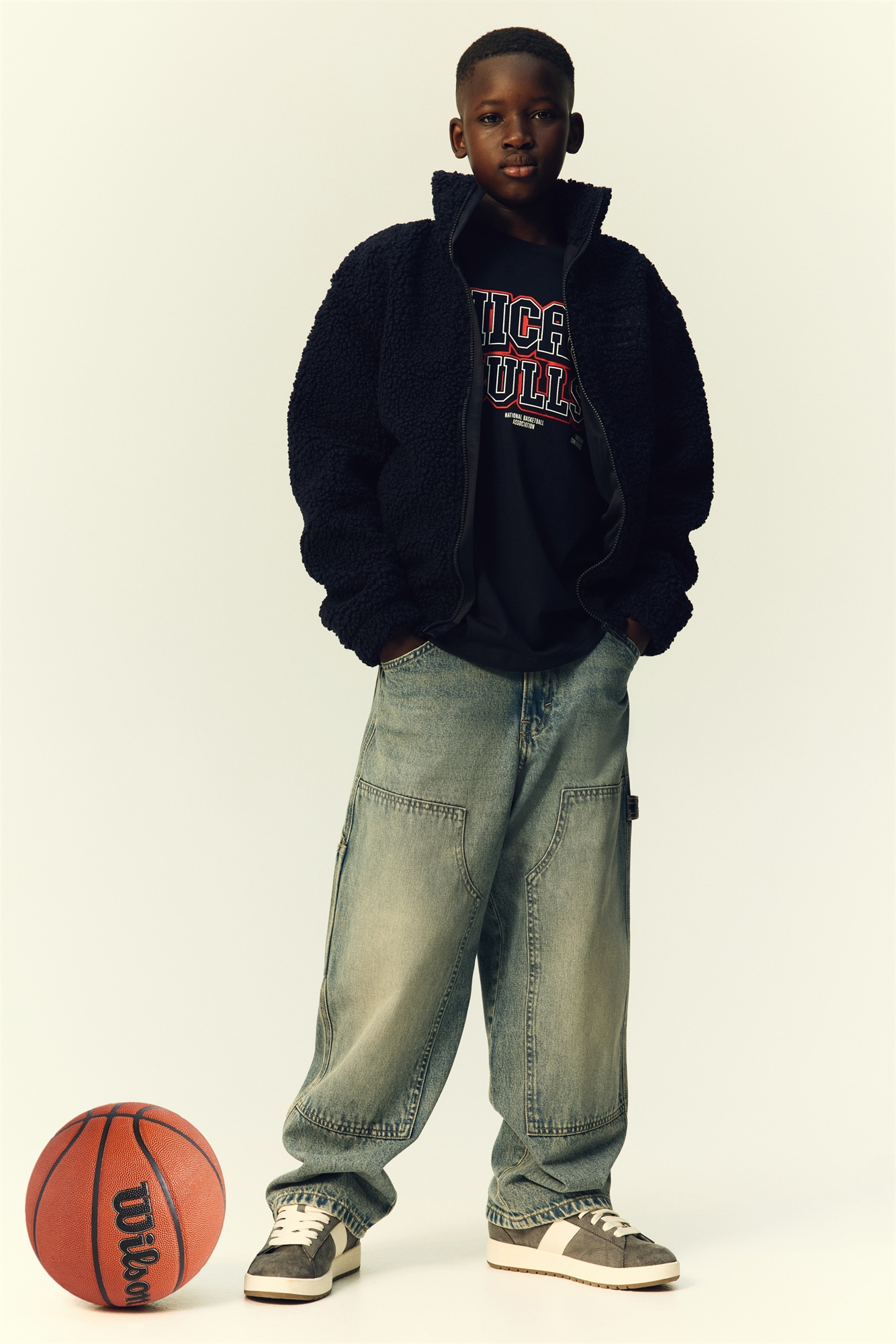 Куртка из мягкого тедди с вышитыми аппликациями спереди и сзади. Воротник-стойка, застежка-молния спереди и прорезные передние карманы. Эластичные манжеты и подол. На подкладке.