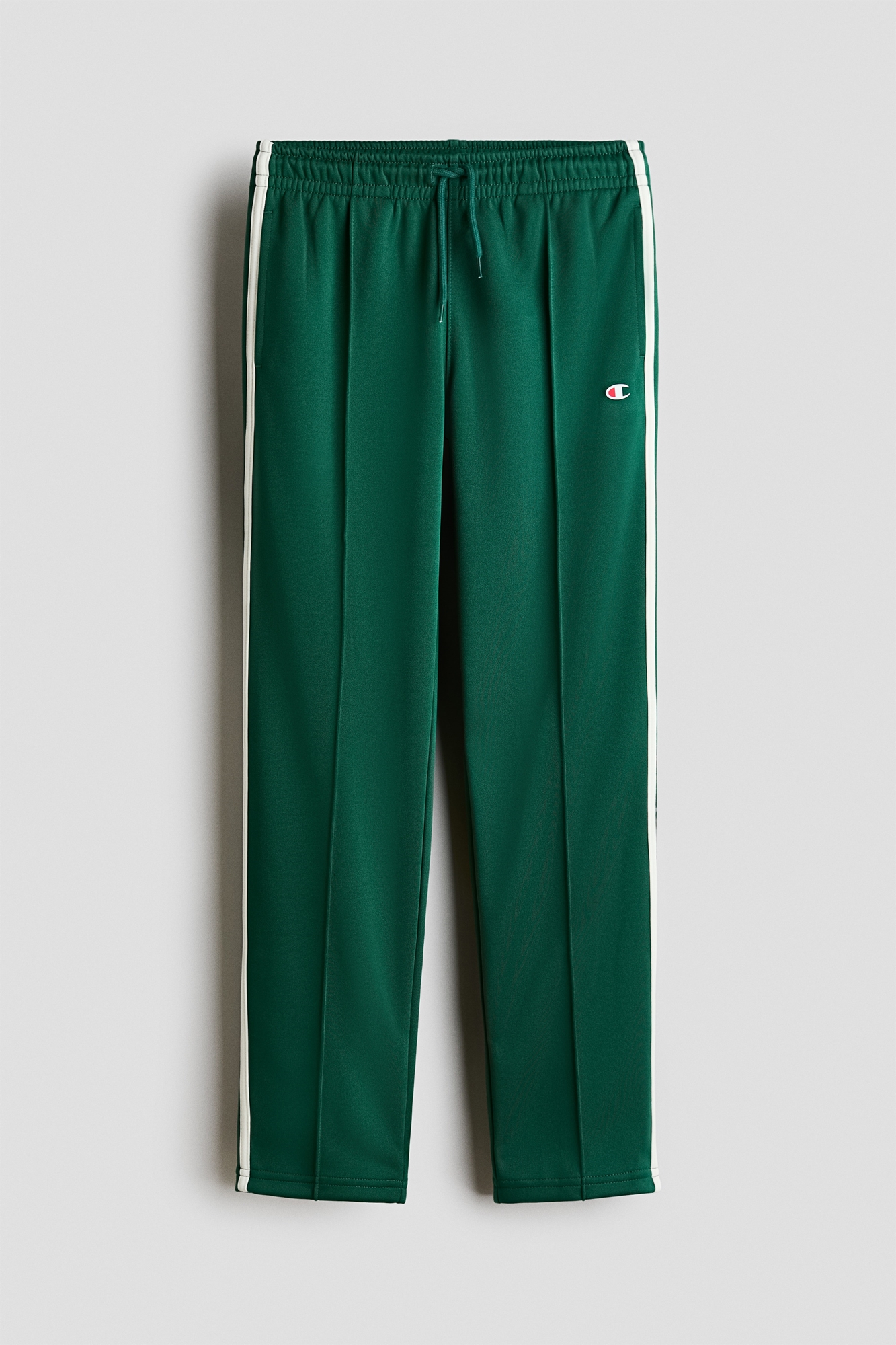 Эти зеленые спортивные брюки с белыми боковыми полосками имеют облегающий спортивный силуэт. Они изготовлены из мягкого полиэстера интерлок и украшены небольшим набивным логотипом Champion C на левом бедре. Сочетаются с курткой на молнии - из коллекции "State of Play", в которой особое внимание уделяется координации и комфорту.