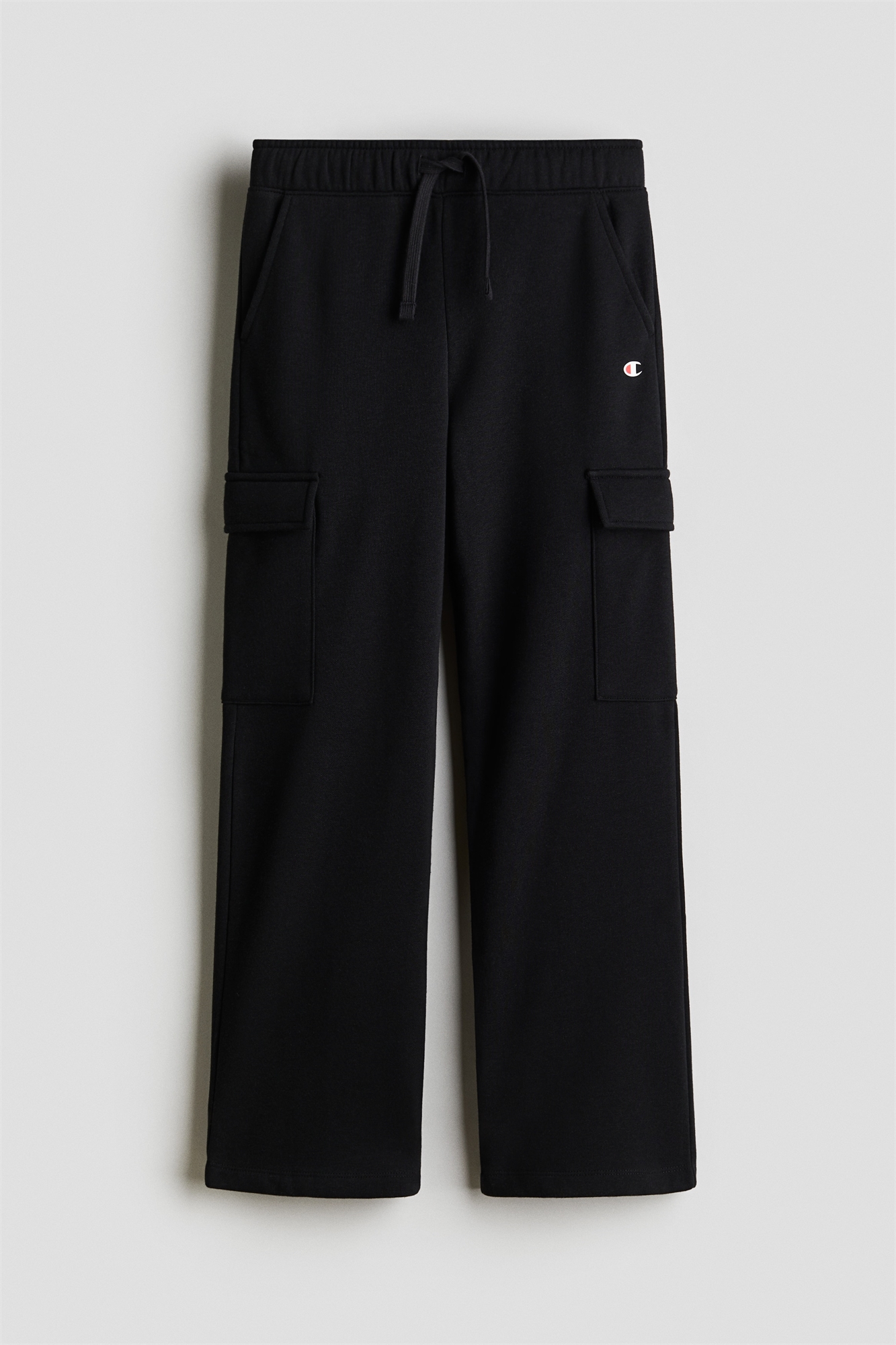 Эти черные брюки-карго из флиса сочетают в себе функциональность и комфорт. Практичные боковые карманы, свободный крой, эластичный пояс и ребристые манжеты. Логотип Champion C незаметно расположен на бедре. Из коллекции "ICONS PANTS" - созданы для движения, предназначены для повседневной носки.