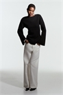 Длинный вязаный топ из мягкой шерсти с вырезом-лодочкой и длинными рукавами. Облегающий крой с расклешением к подолу.