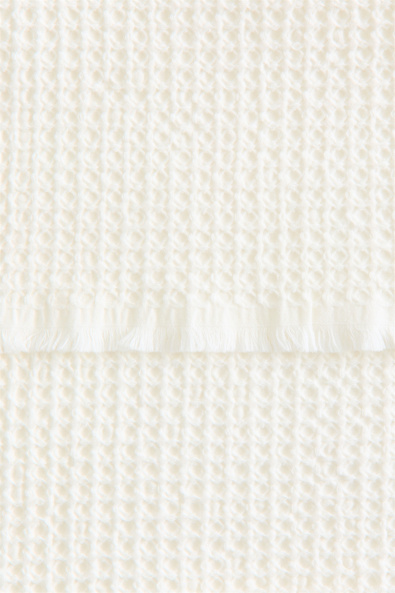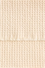 Банное полотенце из мягкого хлопка с вафельной текстурой, с бахромой по коротким сторонам и петлей для подвешивания на одной из длинных сторон.