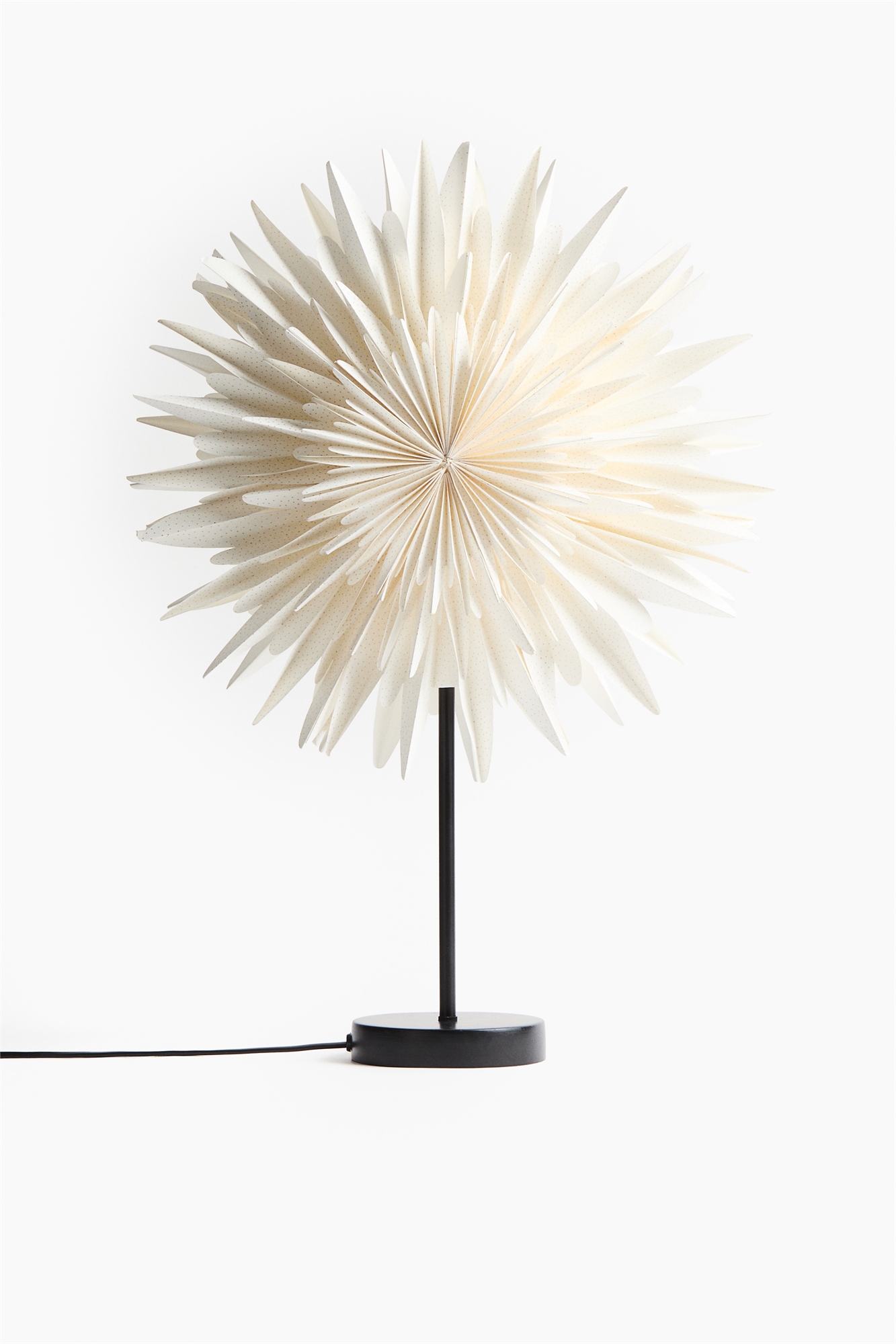 Настольная лампа с потрясающей белой бумажной звездой и черным основанием. Изготовленная из трех слоев плиссированной бумаги, округлая форма придает ей игривое, ветреное очарование. Эта отдельно стоящая адвент-звезда создает уютную рождественскую атмосферу и добавляет праздничный штрих в любое пространство. Идеально подходит для размещения в окне или на серванте. Патрон E14. Лампочка в комплект не входит. Максимальная мощность 4 Вт.
