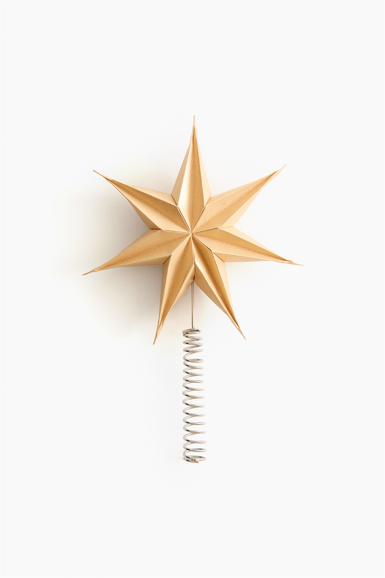 Бумажная звезда с металлической спиральной основой, которая идеально подойдет для верхушки вашей елки. Звезду легко собрать с помощью небольшого зажима, который удерживает ее вместе, прежде чем надеть на металлический штырь.