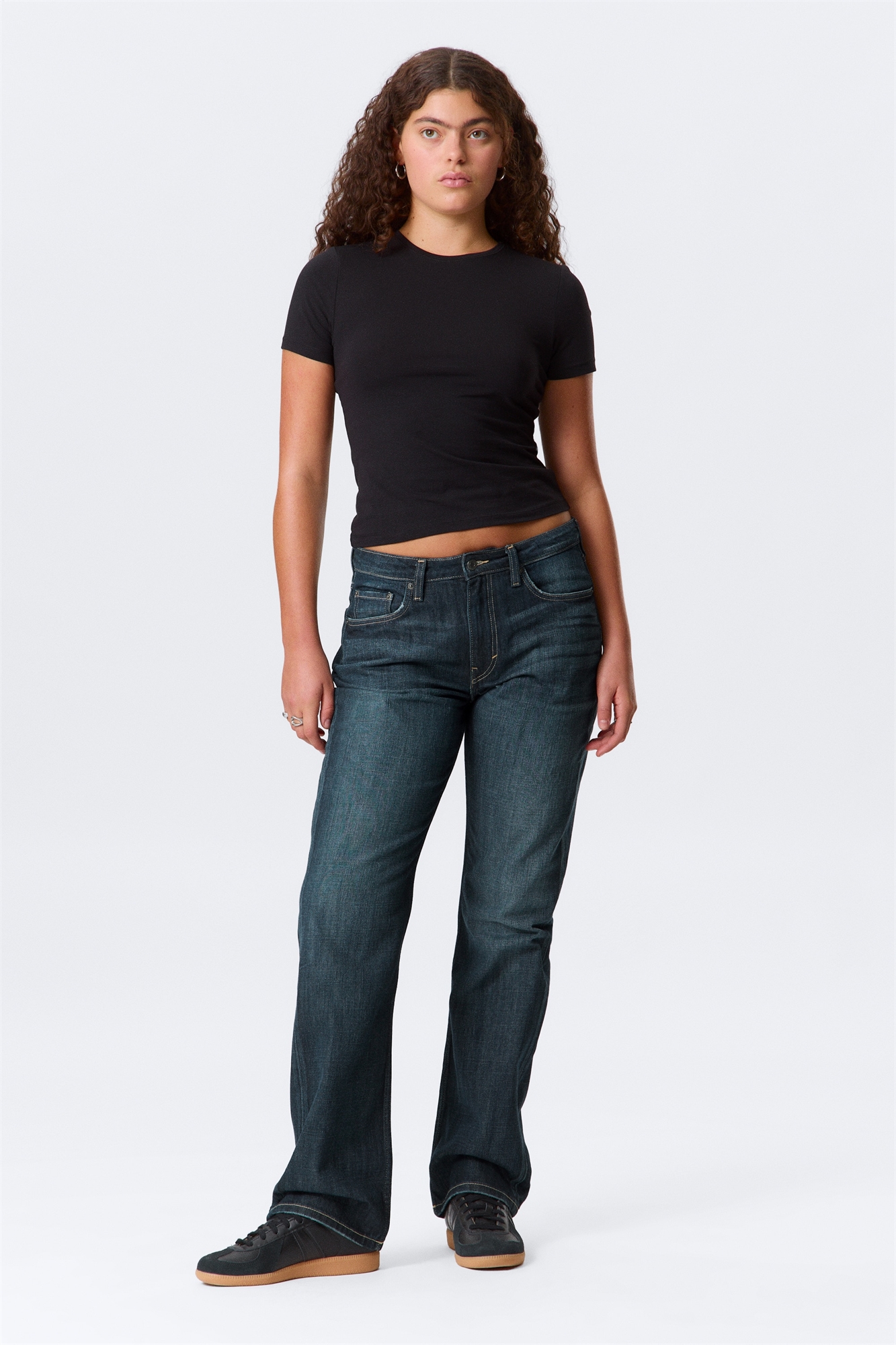 Джинсы со средней посадкой и прямыми штанинами. Джинсы изготовлены из жесткого денима из органического хлопка с добавлением переработанного хлопка и имеют классический дизайн с пятью карманами и застежку-молнию.