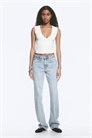 Джинсы со средней посадкой и прямыми штанинами. Джинсы изготовлены из жесткого денима из органического хлопка с добавлением переработанного хлопка и имеют классический дизайн с пятью карманами и застежку-молнию.