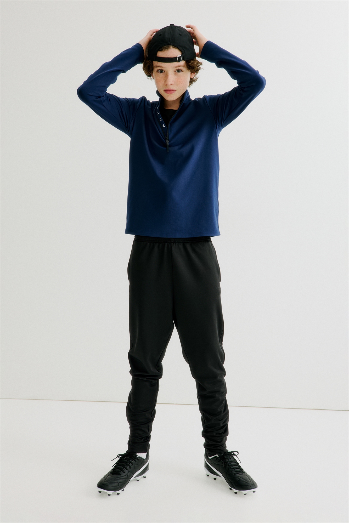 Футбольные брюки из функциональной ткани DryMove™, которая отводит влагу от кожи, обеспечивая комфортную сухость во время движения. Зауженный крой, эластичная талия со скрытым шнурком, боковые карманы на молнии, зауженные ноги и молнии по краям.
