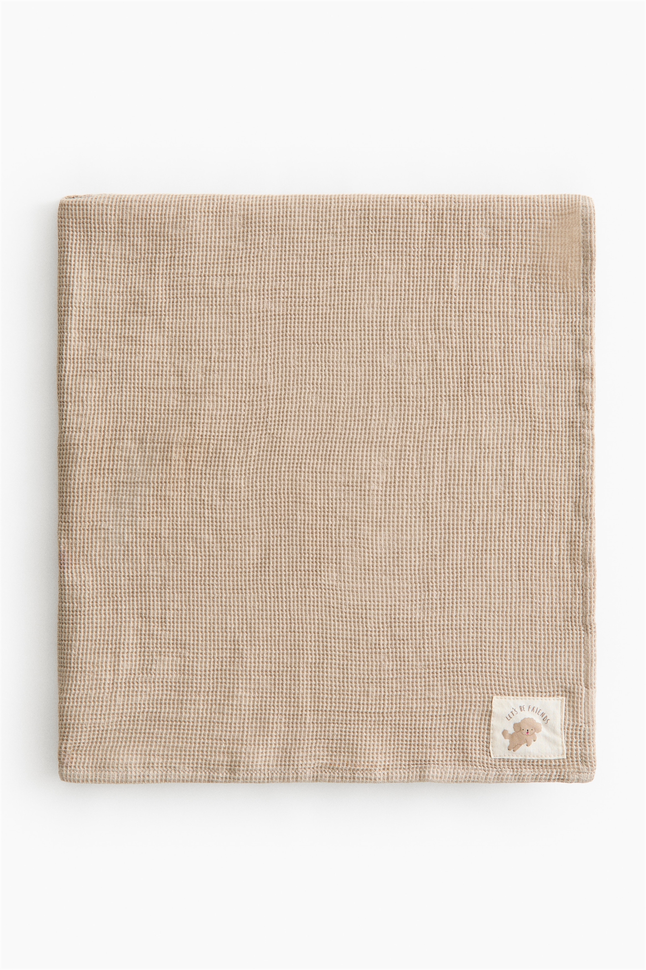 Детское одеяло из мягкого хлопчатобумажного материала с вафельной текстурой и хорошей воздухопроницаемостью, с милой аппликацией в одном углу. Одеяло становится мягче с каждой стиркой.