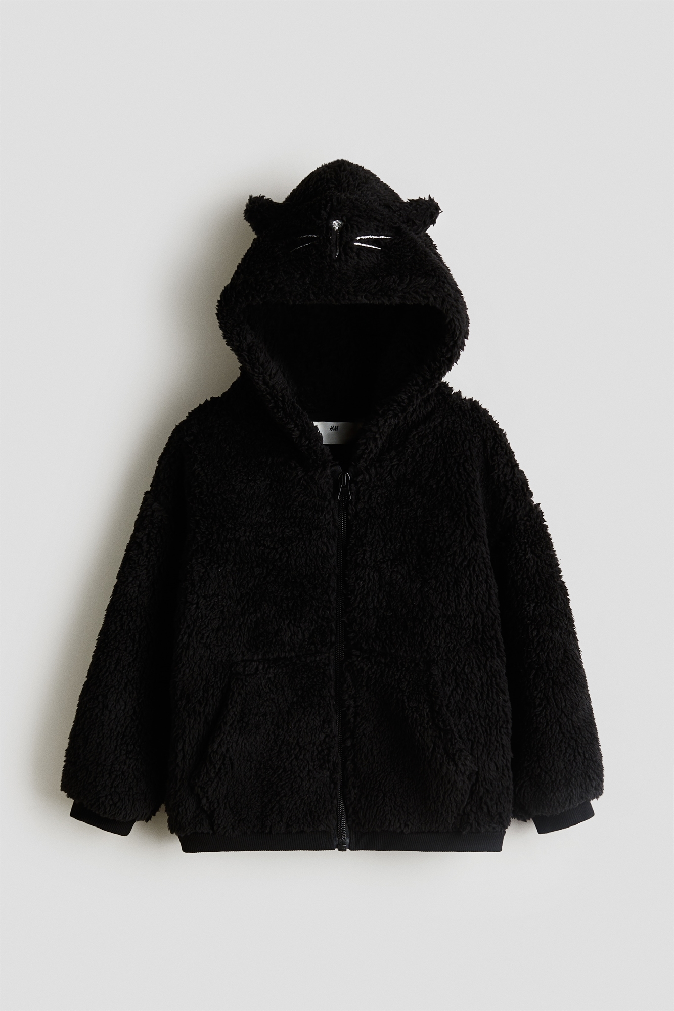 Свободная толстовка на молнии из мягкого тедди с капюшоном, украшенным ушками. Застежка-молния спереди, спущенные плечи и ребристая отделка из джерси на манжетах и подоле.