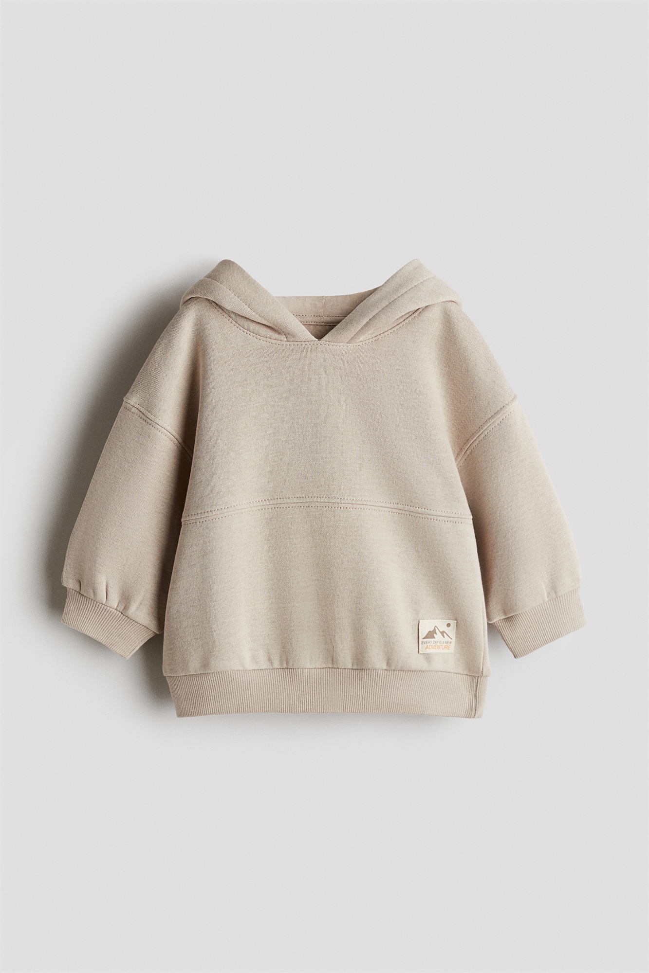 Толстовка из мягкой толстовочной ткани с мягкой начесом внутри, детализированной видимыми разрезными и швейными швами. Капюшон на подкладке, спущенные плечи и длинные рукава. Широкие ленты на манжетах и подоле.