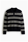 Рубашка-поло с длинными рукавами из мягкого тонкого трикотажного хлопка с воротником, застежкой на пуговицы и широкой ребристой отделкой на манжетах и подоле. Свободный крой для пышного, но не чрезмерно большого силуэта.