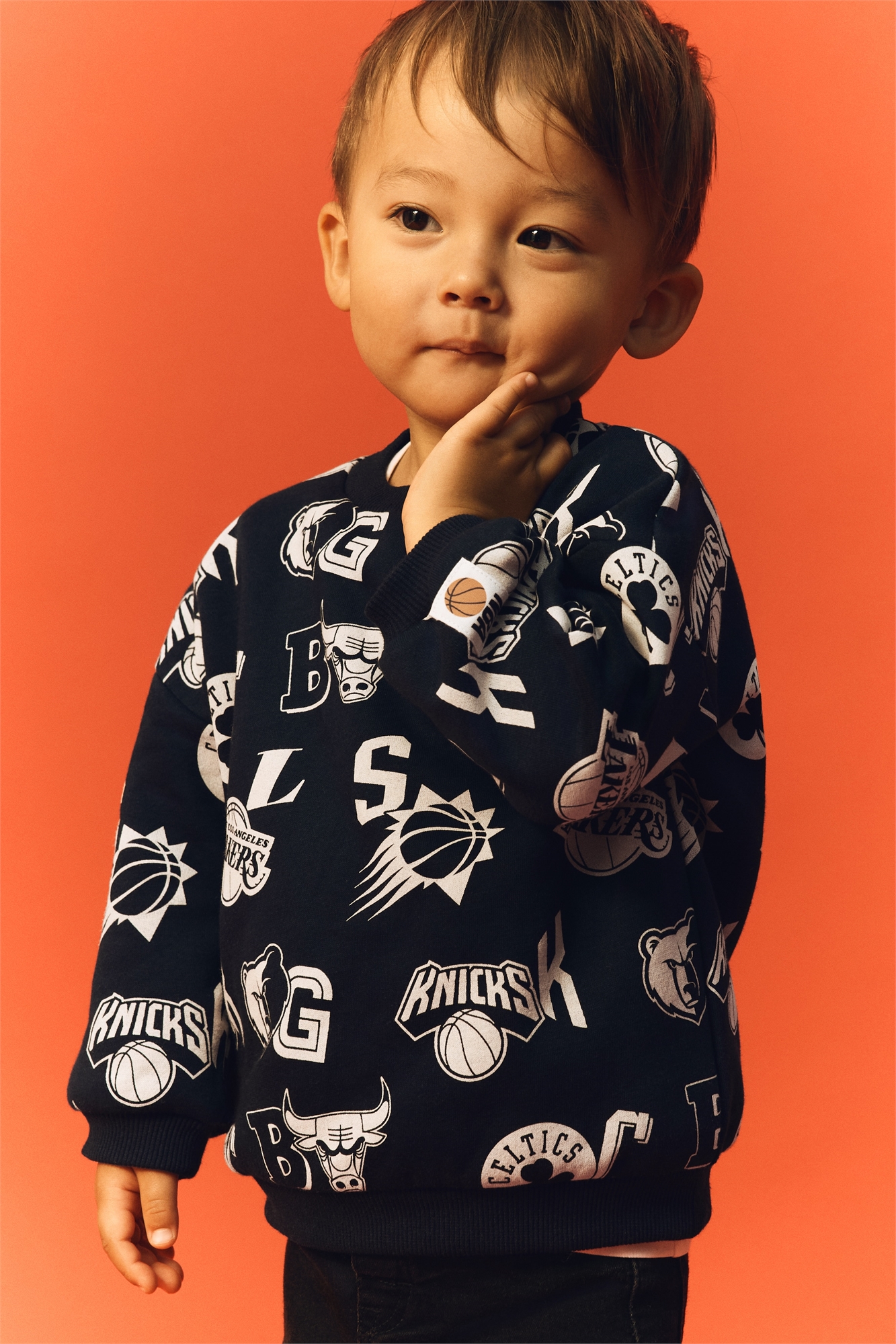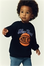 Топ из мягкой принтованной толстовки с мягкой ворсистой внутренней стороной. Круглый вырез в рубчик с застежками с одной стороны, спущенные плечи, манжеты и подол в рубчик.