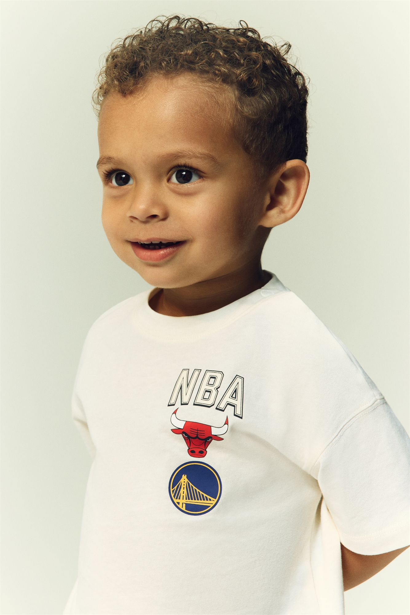 Футболка из мягкого хлопкового джерси с принтом. Круглый вырез с ребристой отделкой, застежки с одной стороны (кроме размеров 2-4Y) и спущенные плечи.