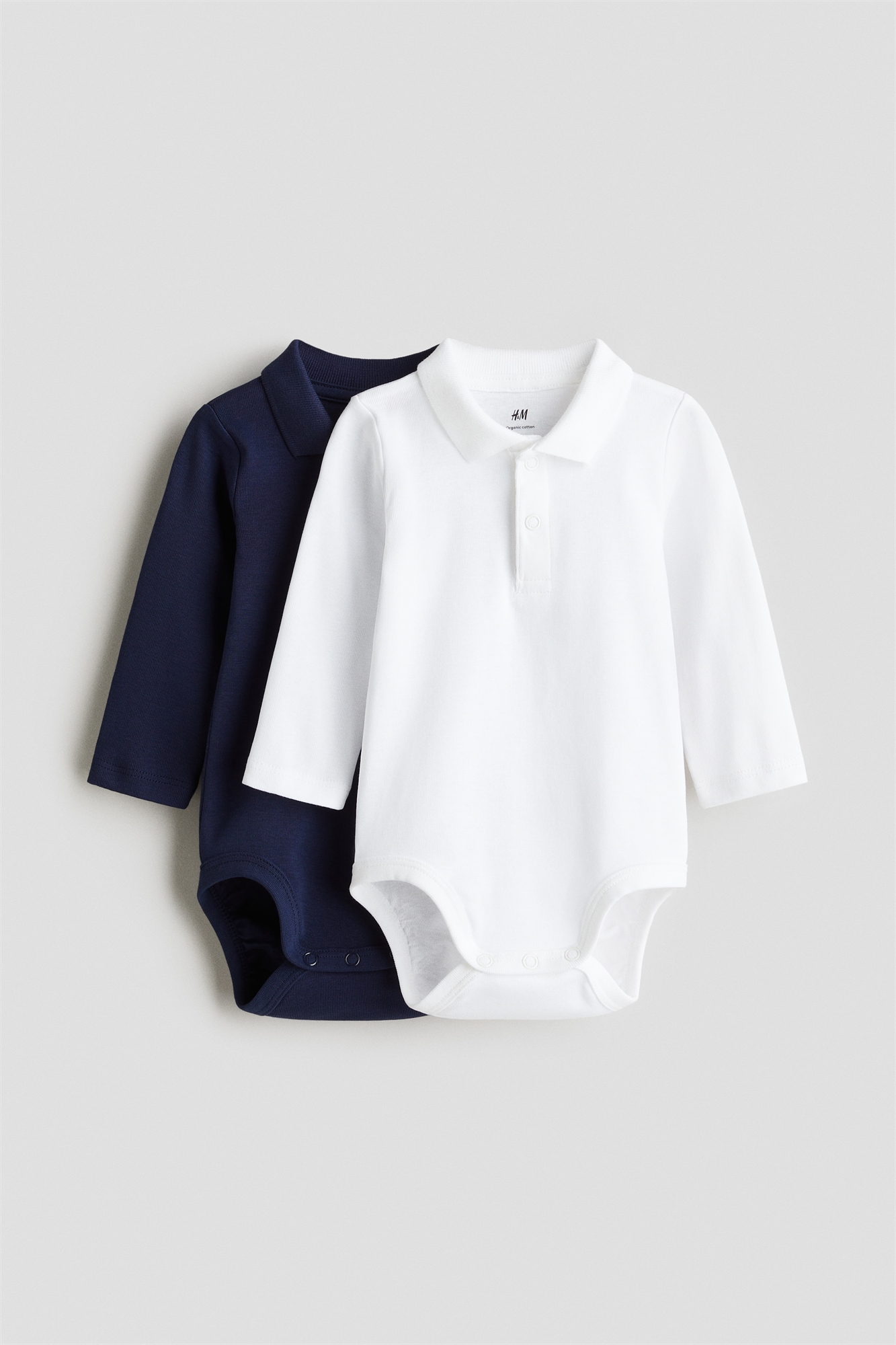 Боди с длинными рукавами из мягкого хлопкового трикотажа с отложным воротником в рубчик и застежкой на кнопках сверху. Застежки внизу для удобства переодевания. Швы вокруг ножек для более удобного и плотного прилегания подгузника.