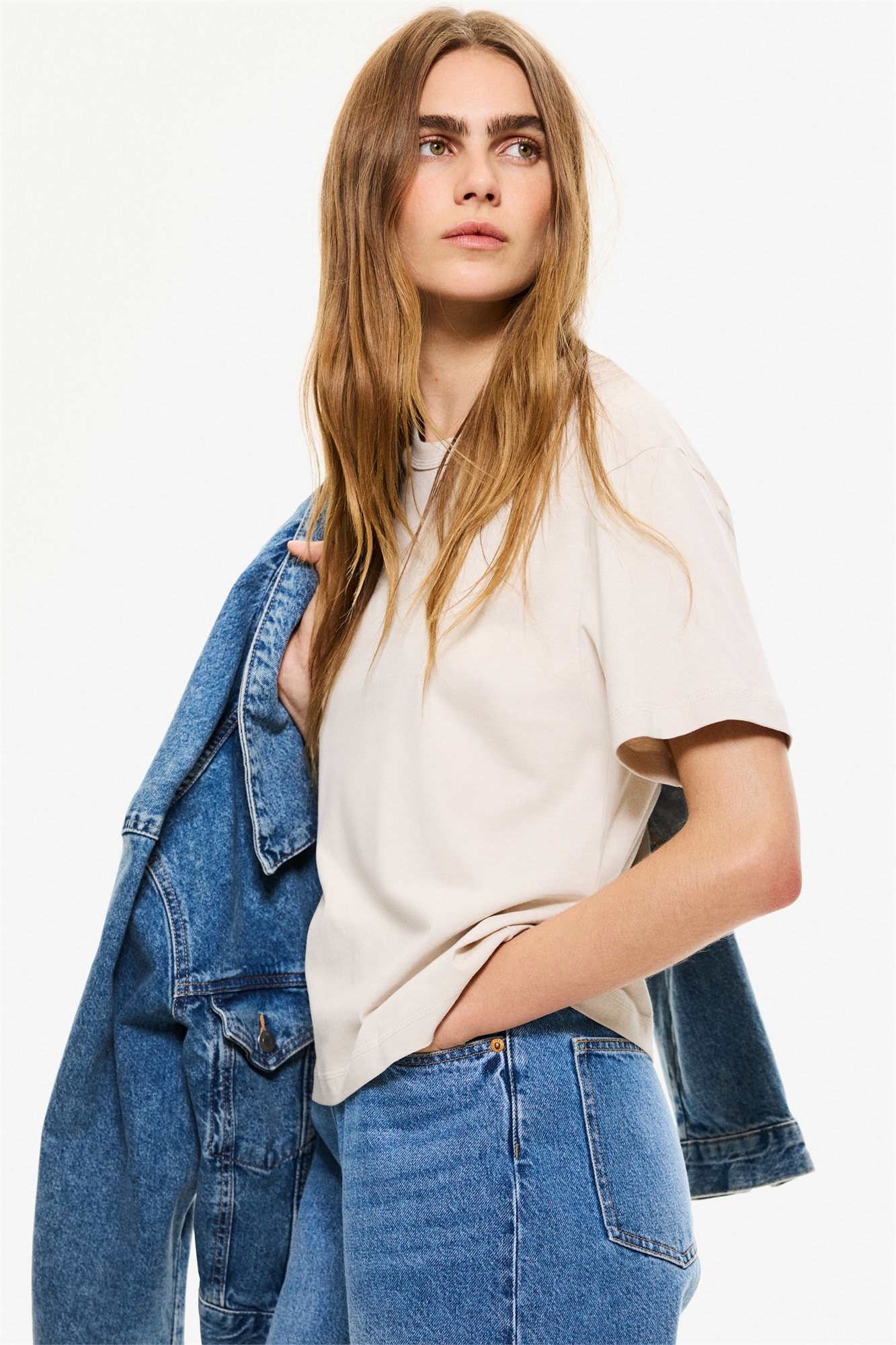 Футболка из мягкого хлопка и вискозного джерси с горловиной и слегка спущенными плечами.