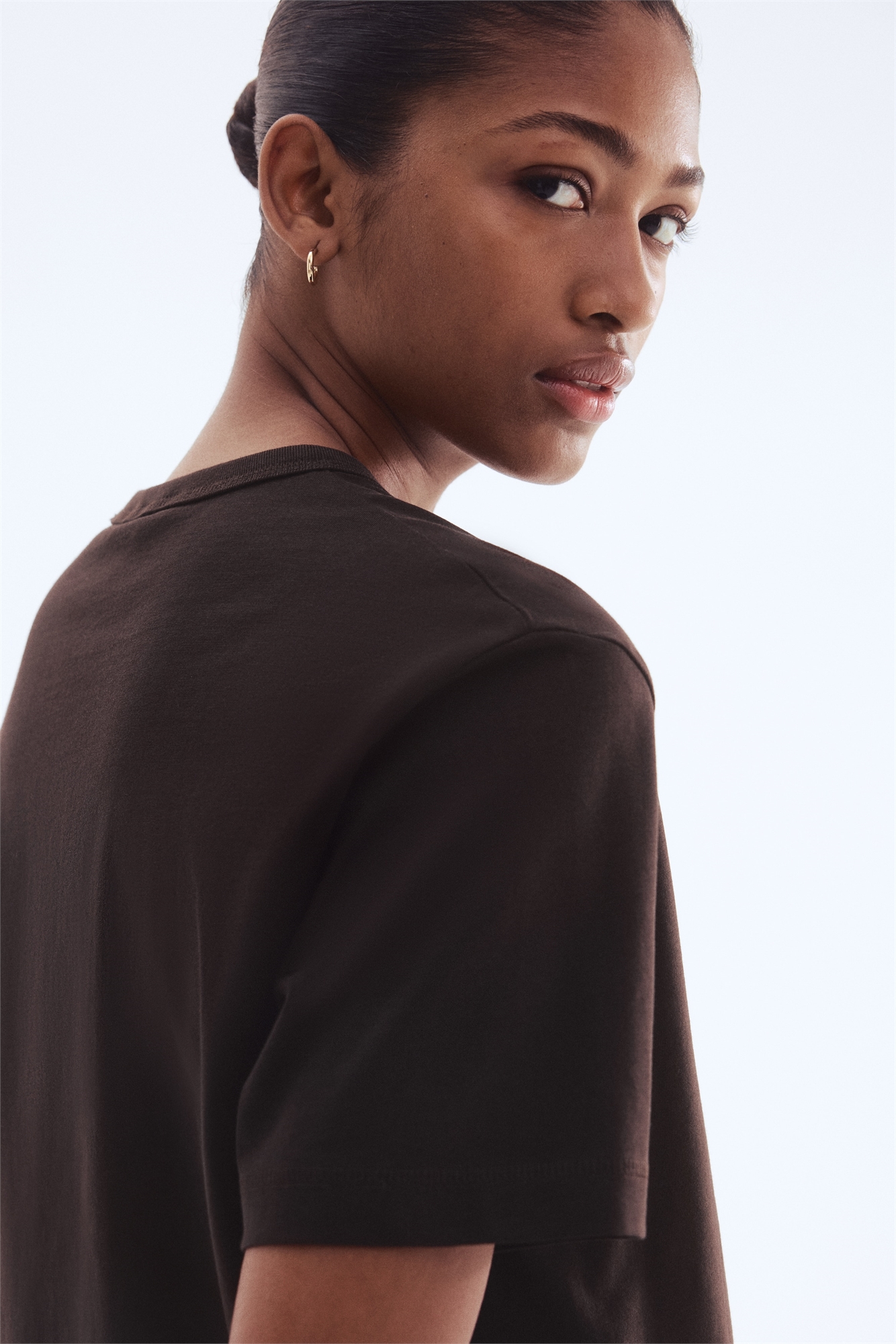 Футболка из мягкого хлопка и вискозного джерси с горловиной и слегка спущенными плечами.