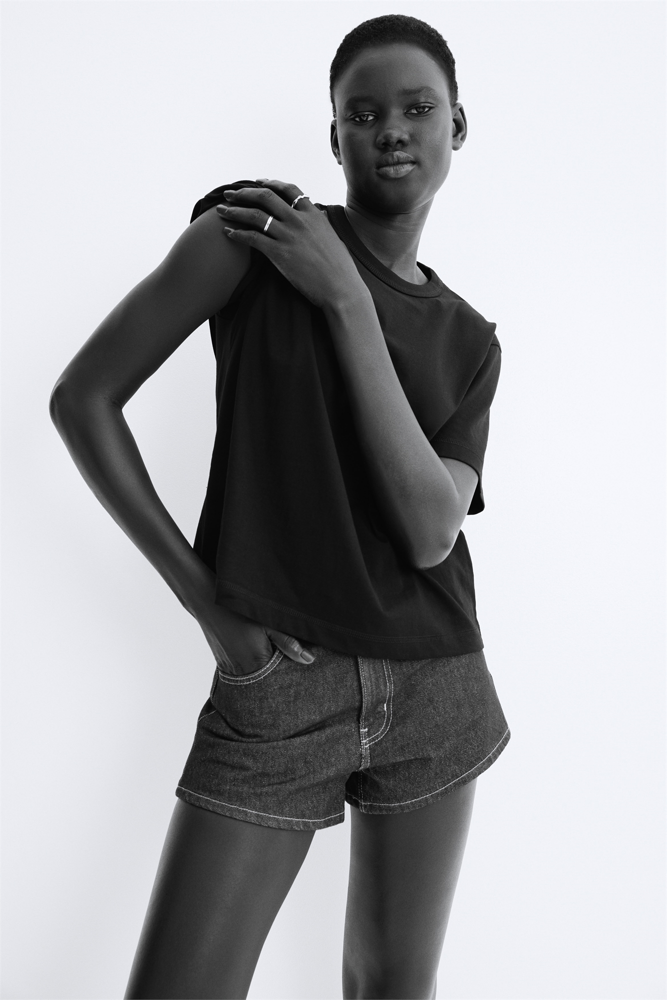 Футболка из мягкого хлопка и вискозного джерси с горловиной и слегка спущенными плечами.