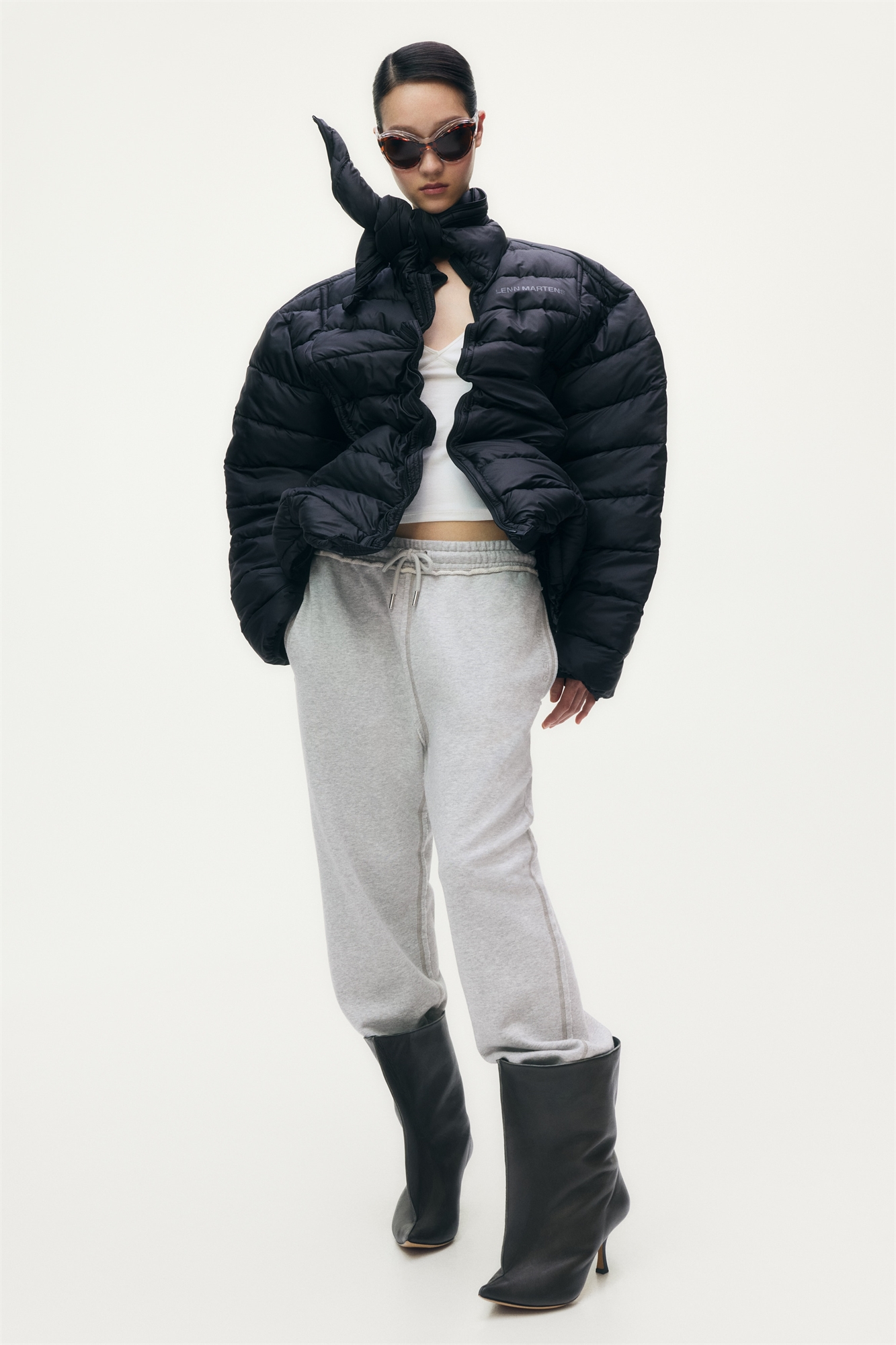 Джоггеры свободного кроя из легкой хлопковой ткани со свитшотом и логотипом дизайнера, вышитым с одной стороны спереди. Эластичная вставка и шнурок на талии, боковые карманы и открытый задний карман. Зауженные ноги с эластичной отделкой по краям. Швы "флэтлок" и необработанные края по всей длине.