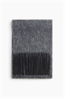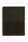 Шарф из тканого материала с мягкой матовой поверхностью. Бахрома по коротким сторонам и обтрепанные края по длинным сторонам.