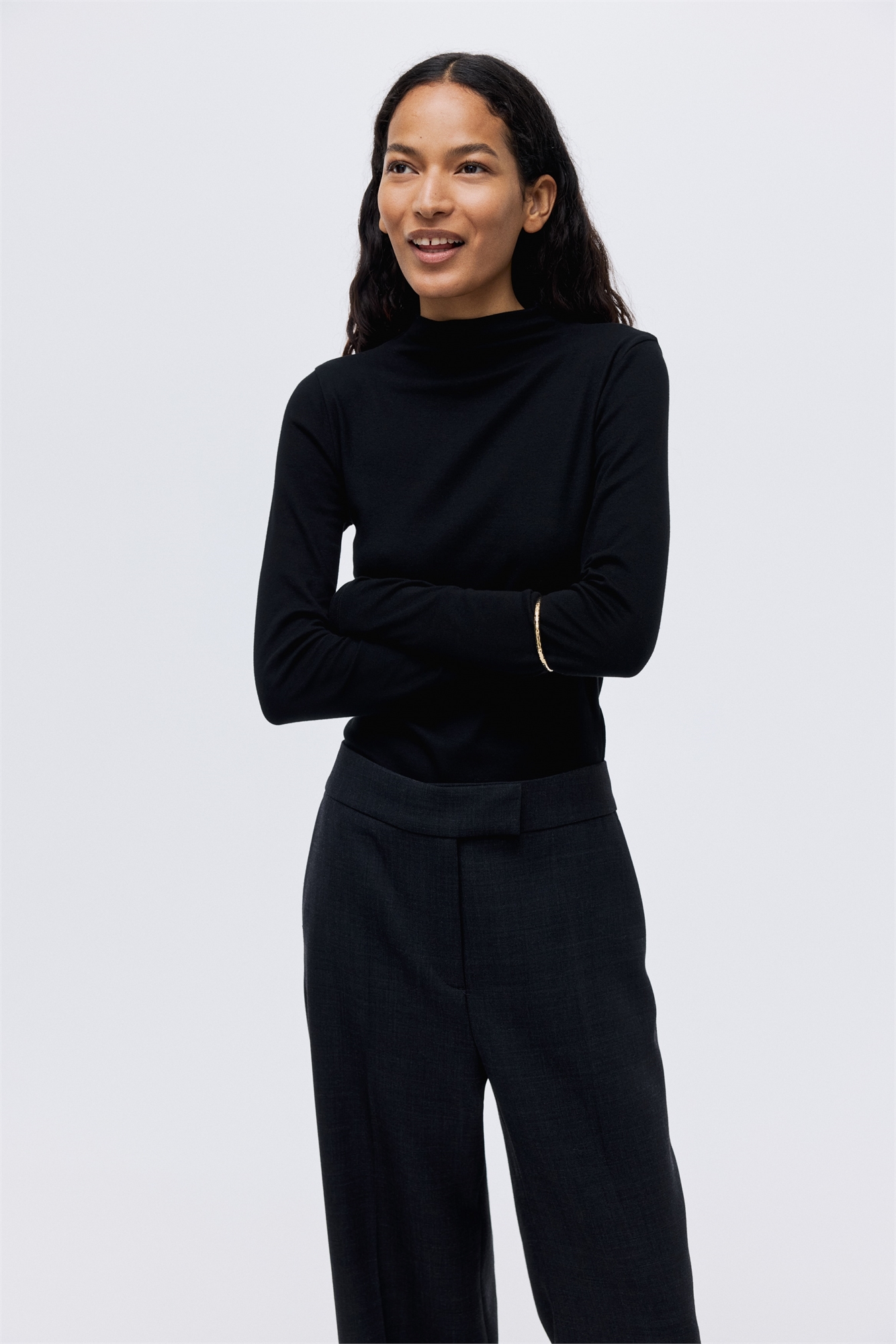 Облегающий топ из мягкого трикотажа с горловиной-водолазка и длинными рукавами.
