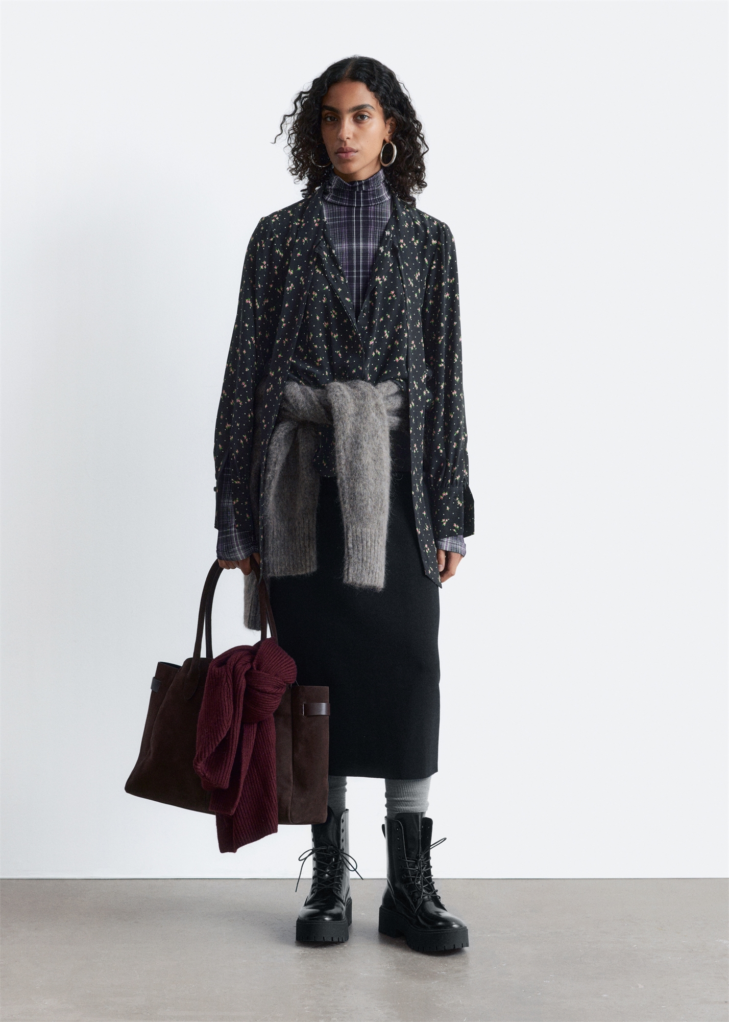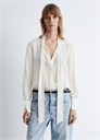 Эта блузка изготовлена из 100% шелка тутового дерева и отличается легкостью и полупрозрачностью. Прямой силуэт, воротник с завязками, потайная застежка на пуговицах и длинные объемные рукава с широкими манжетами на пуговицах. Длина блузки: 63,4 см / 24,9" (EU 36 / UK 8 / US 4)