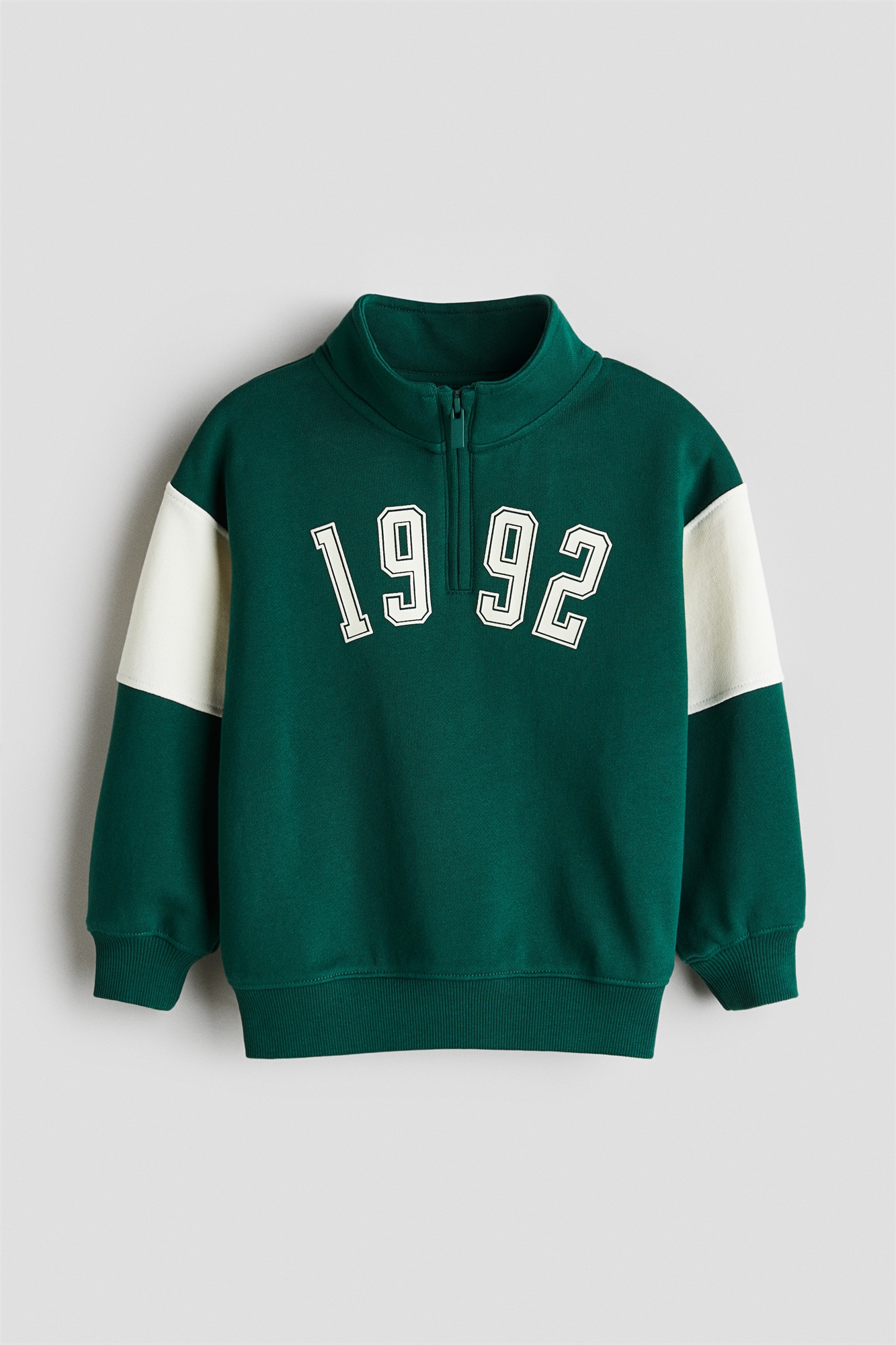 Цветной топ из легкой хлопковой толстовки с принтом спереди. Воротник-стойка, потайная застежка на молнии, спущенные плечи, манжеты и подол в рубчик.