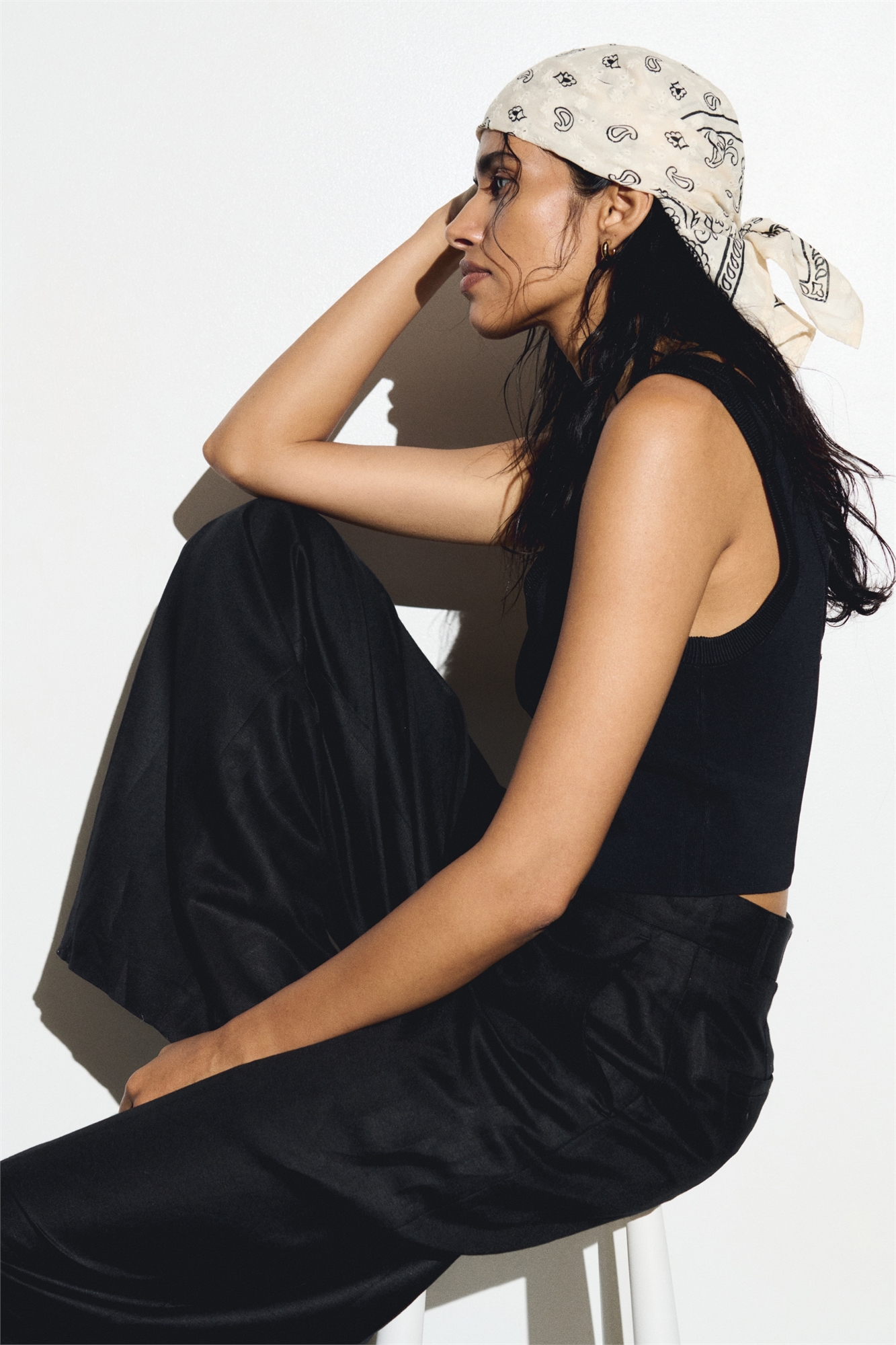 Квадратный шарф из воздушного хлопка с набивным рисунком, декорированный узором broderie anglaise.