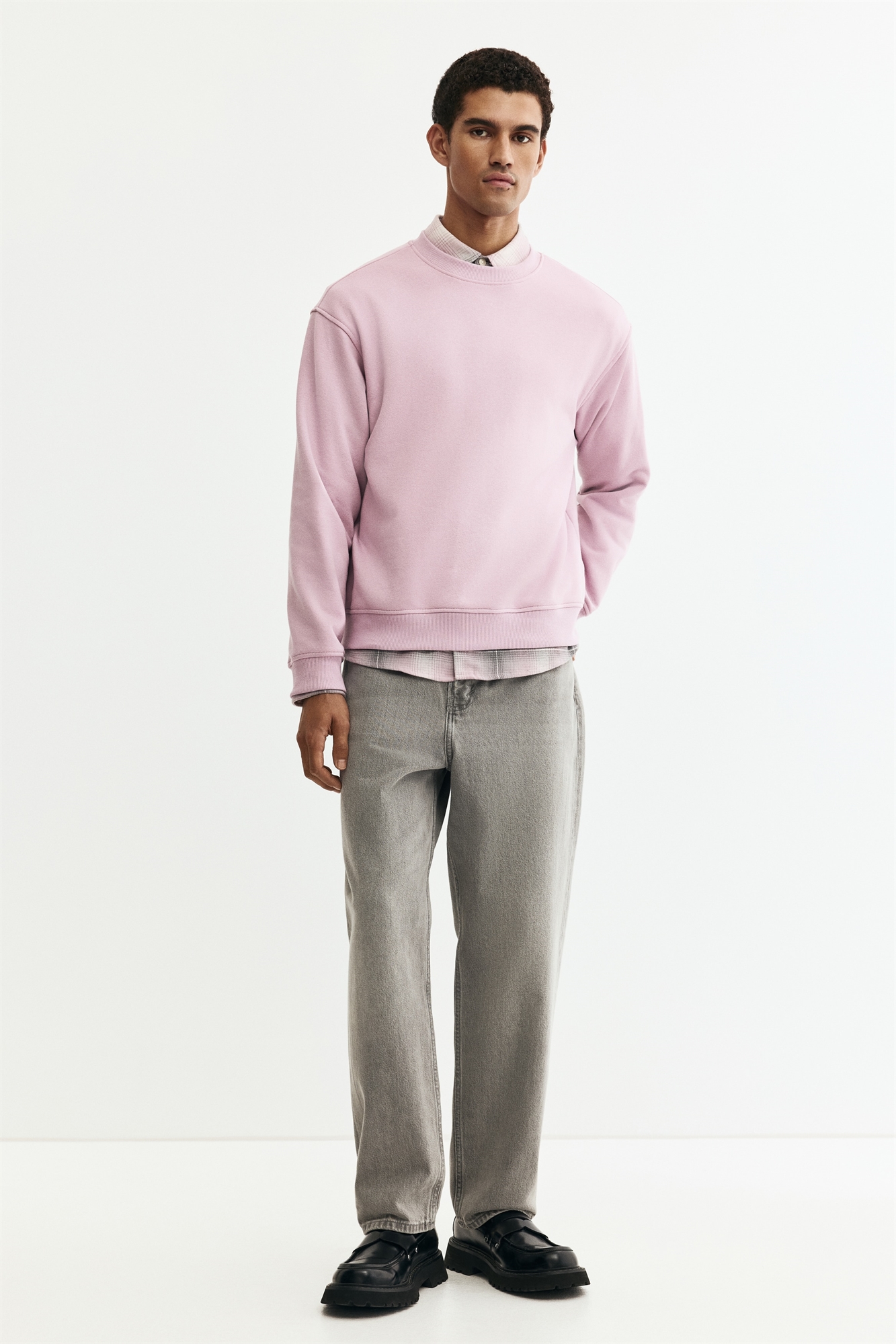 Свитшот Loose Fit средней плотности из смеси хлопка с мягкой ворсистой изнанкой. Круглый вырез в рубчик, спущенные плечи, длинные рукава, широкая тесьма на манжетах и подоле. Свободный крой для пышного, но не чрезмерно объемного силуэта.