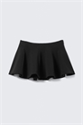 Мини-юбка-пачка из переработанного полиэстера. Заниженная талия, невидимая застежка-молния сбоку и расклешенный силуэт.