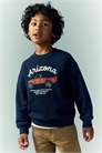 Топ из легкого толстовочного материала с мягкой начесом внутри. Круглый вырез в рубчик, спущенные плечи, длинные рукава, манжеты и подол в рубчик.