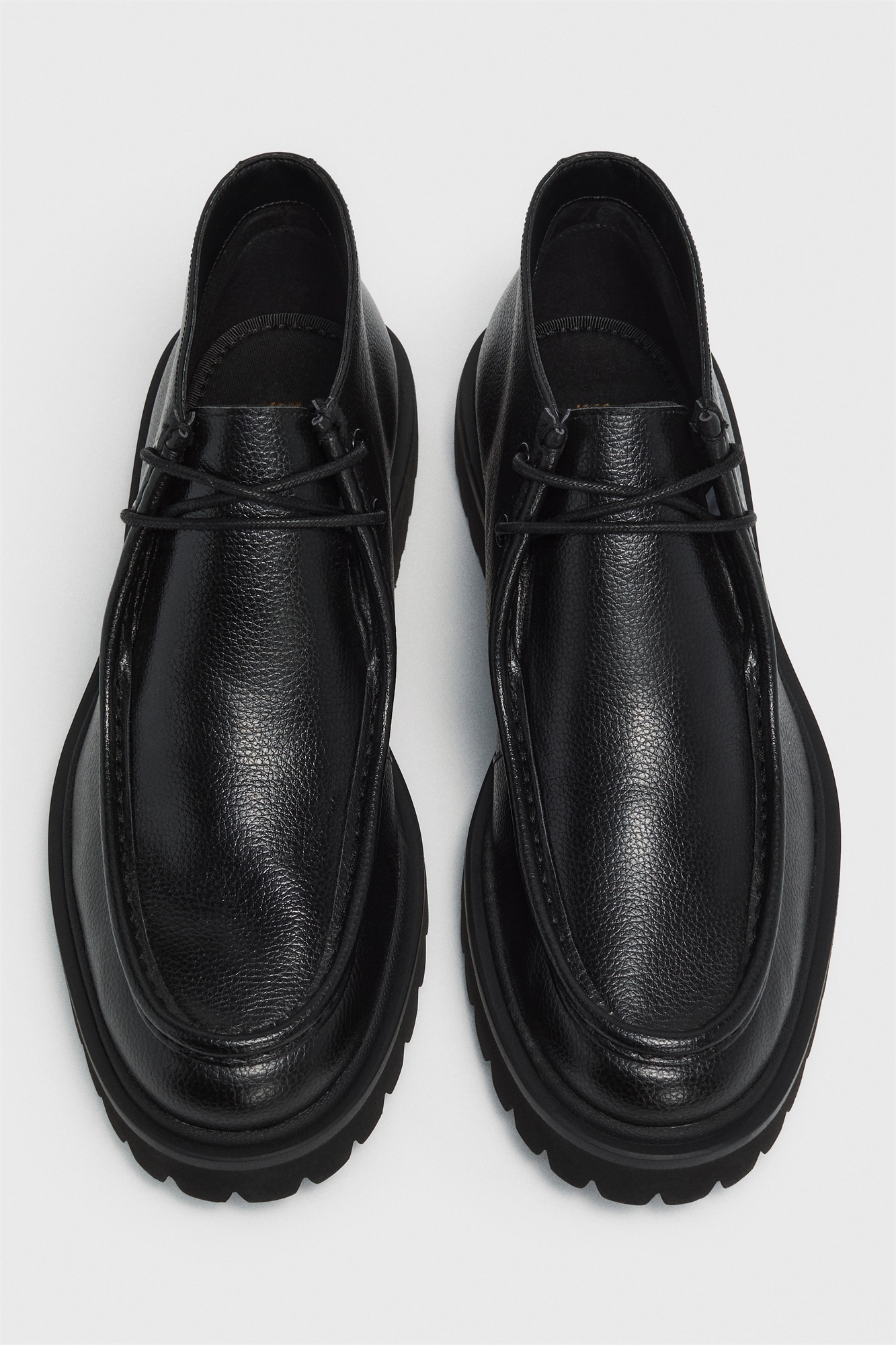 Туфли с миндалевидными носками, открытой шнуровкой и мокасиновым швом спереди. Хлопковые подкладка и стелька. Мохнатая подошва с рисунком.