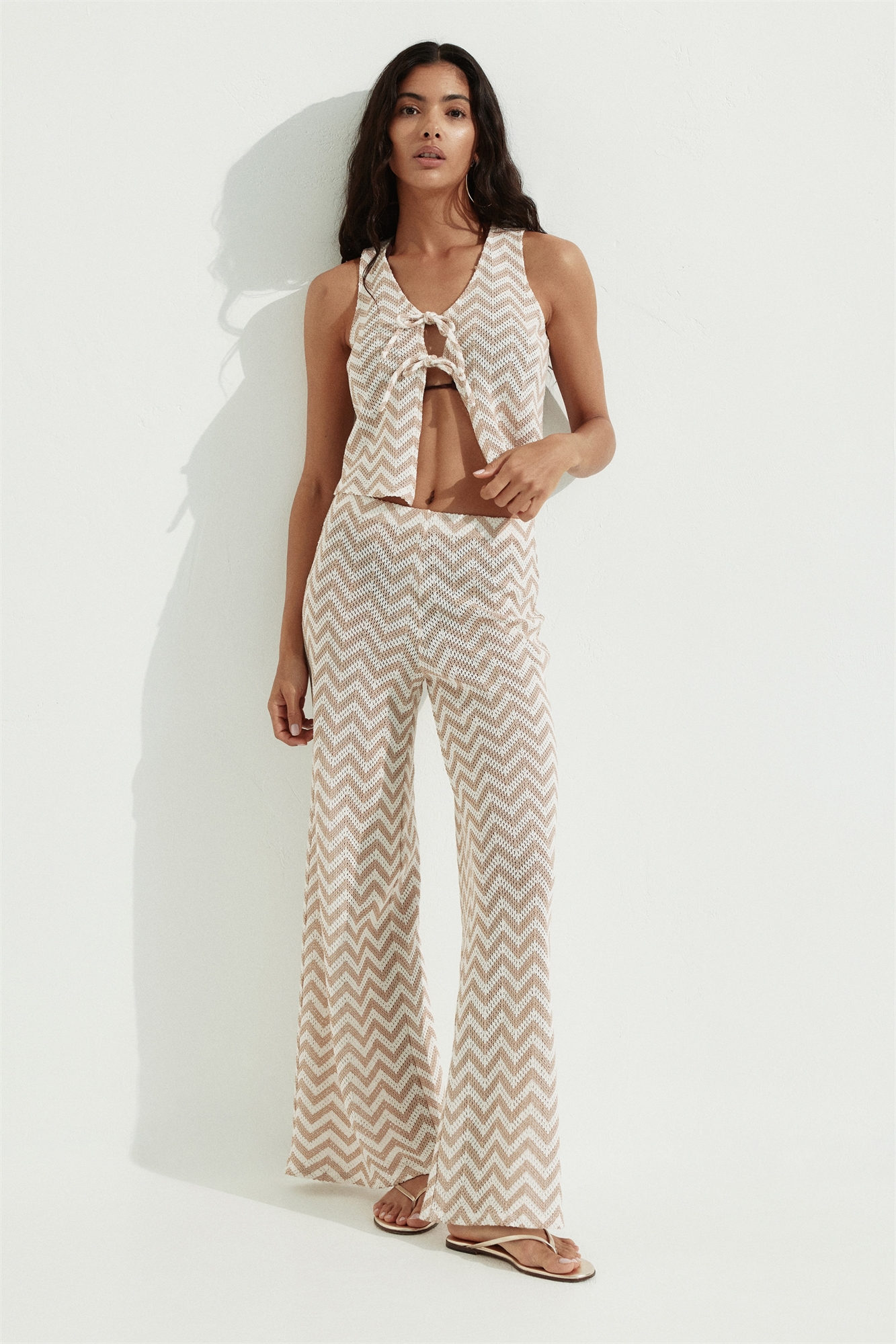 Широкие брюки из мягкого жаккардового трикотажа с высокой талией и скрытой резинкой.