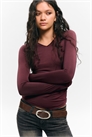 Топ с длинными рукавами, выполненный из мягкого эластичного трикотажа. С V-образным вырезом и слегка расклешенными рукавами.